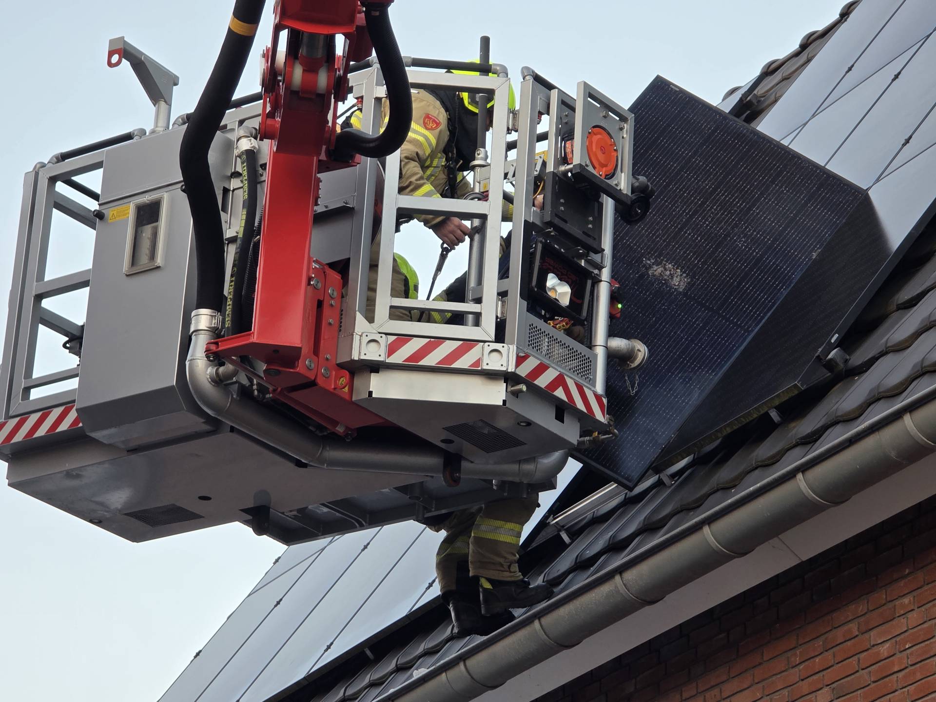 De brandweer werd meteen ingeschakeld en kwam met spoed ter plaatse. Met behulp van een hoogwerker ging de brandweer het dak op en verwijderde het zonnepaneel waarin de brand was ontstaan, waarna de situatie onder controle was.
