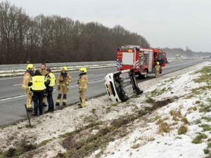 ERMELO – Op de A28 in de richting van Zwolle is vrijdagochtend een auto door vermoedelijke plaatselijke gladheid van de weg geraakt en op zijn zijkant in de berm terechtgekomen.