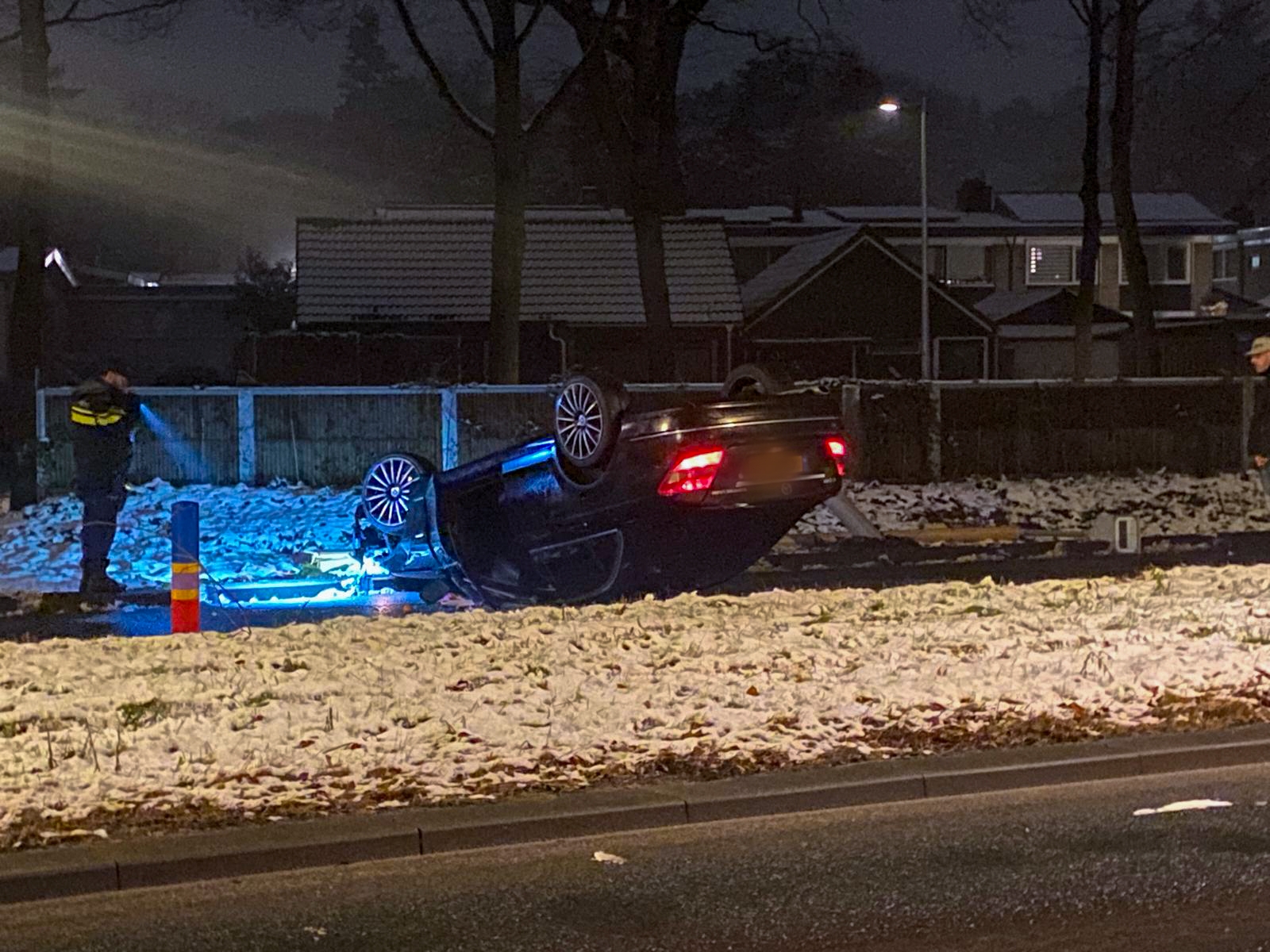 EDE – In de nacht van vrijdag op zaterdag is rond 00.30 uur een auto over de kop geslagen op de Generaal van Hacketlaan in Ede, ter hoogte van de Sijsselt. Buurtbewoners hoorden een harde klap en troffen een auto op zijn dak aan. Zij waarschuwden direct de hulpdiensten.