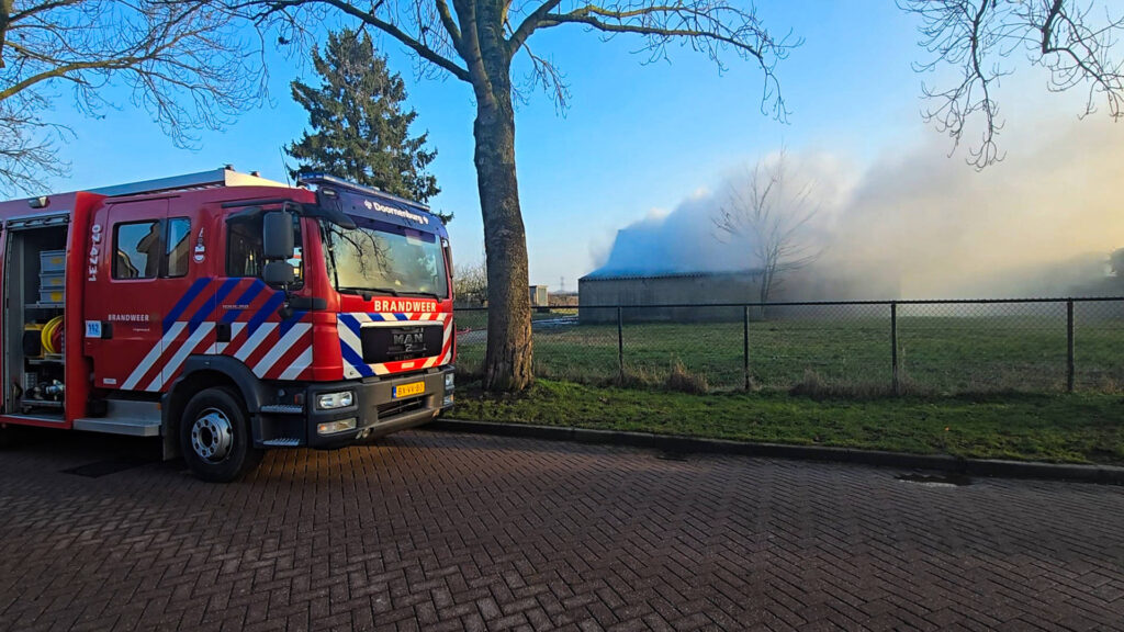 Brand in schuur met hooibalen, omgeving afgezet vanwege asbest