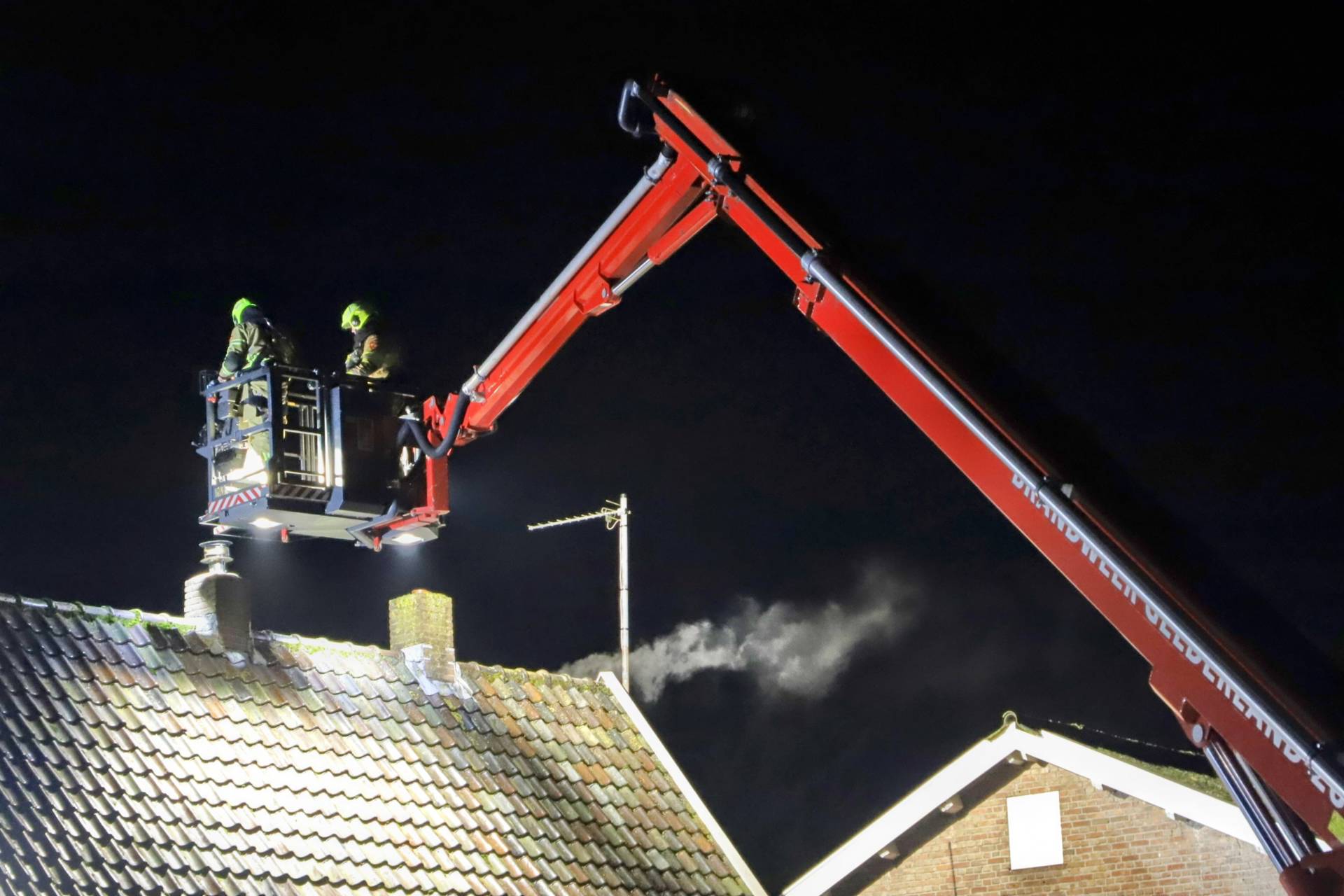 De schoorsteen is na de blussing geveegd om herontsteking te voorkomen. Er raakte niemand gewond.