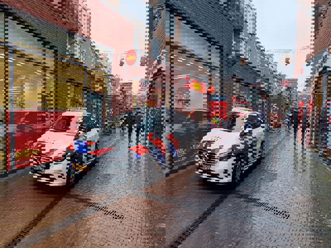 Omwonenden en voorbijgangers worden verzocht de man niet zelf te benaderen, maar bij een mogelijke waarneming direct 112 te bellen. Het is nog onduidelijk in welke winkel het incident plaatsvond en wat er precies is voorgevallen.