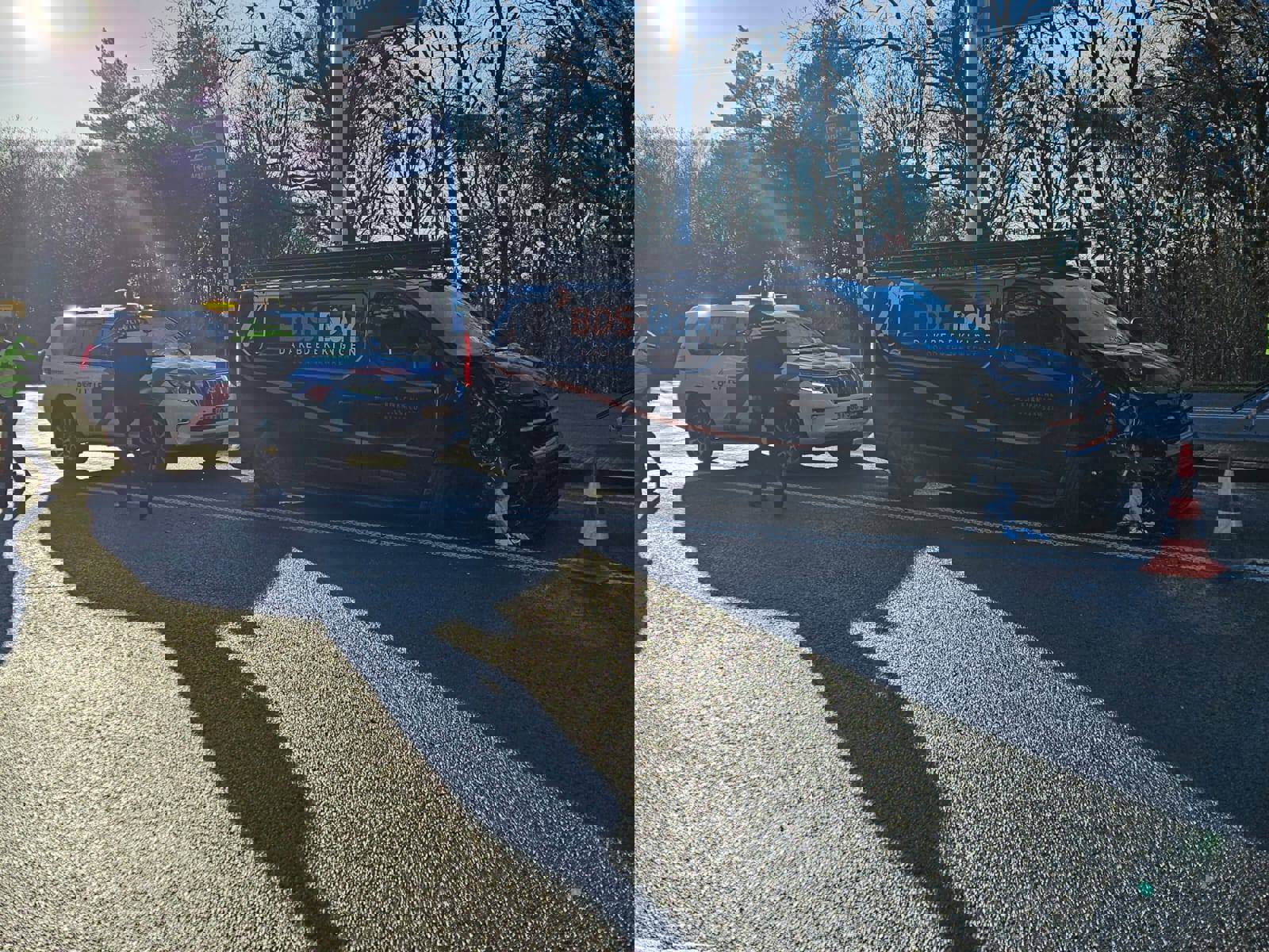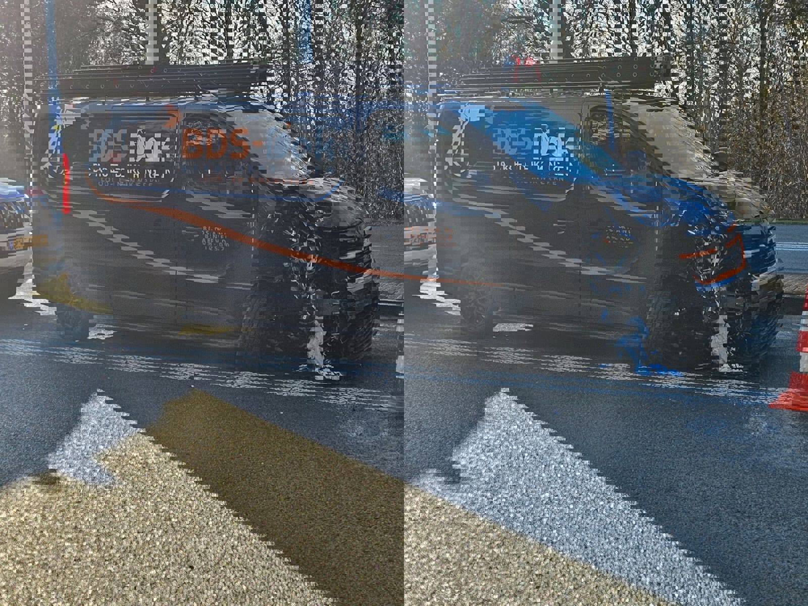 Een bestelbus botste achterop een Volvo, vermoedelijk als gevolg van de laagstaande zon. De voertuigen raakten flink beschadigd, maar er vielen geen ernstige gewonden. De opgeroepen brandweer hoefde niet in actie te komen.
