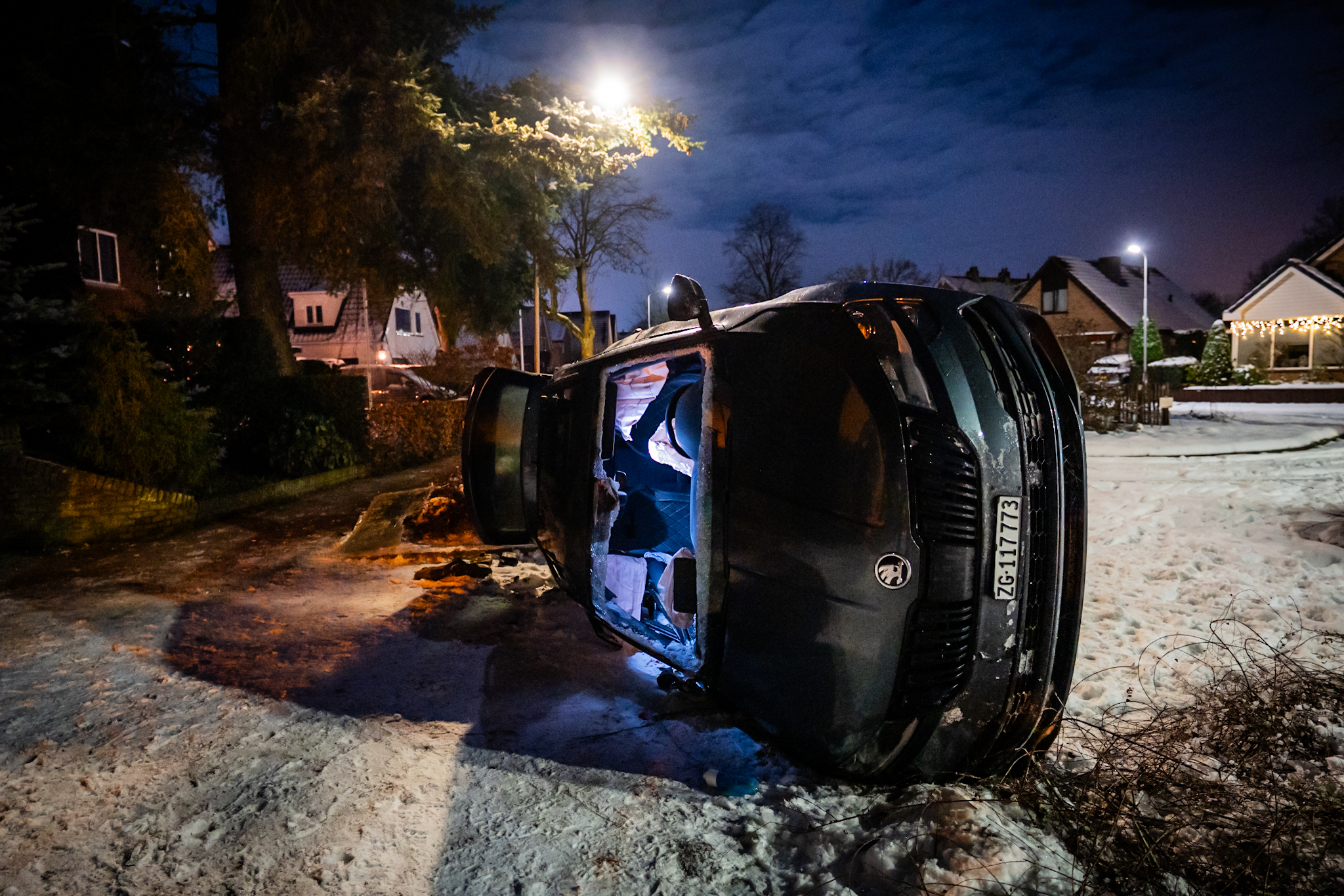 Een van de inzittenden moest door hulpverleners uit het voertuig worden bevrijd. Deze persoon raakte gewond, is naar het ziekenhuis gebracht en daar aangehouden. De tweede inzittende werd direct op locatie gearresteerd en overgebracht naar het politiebureau.