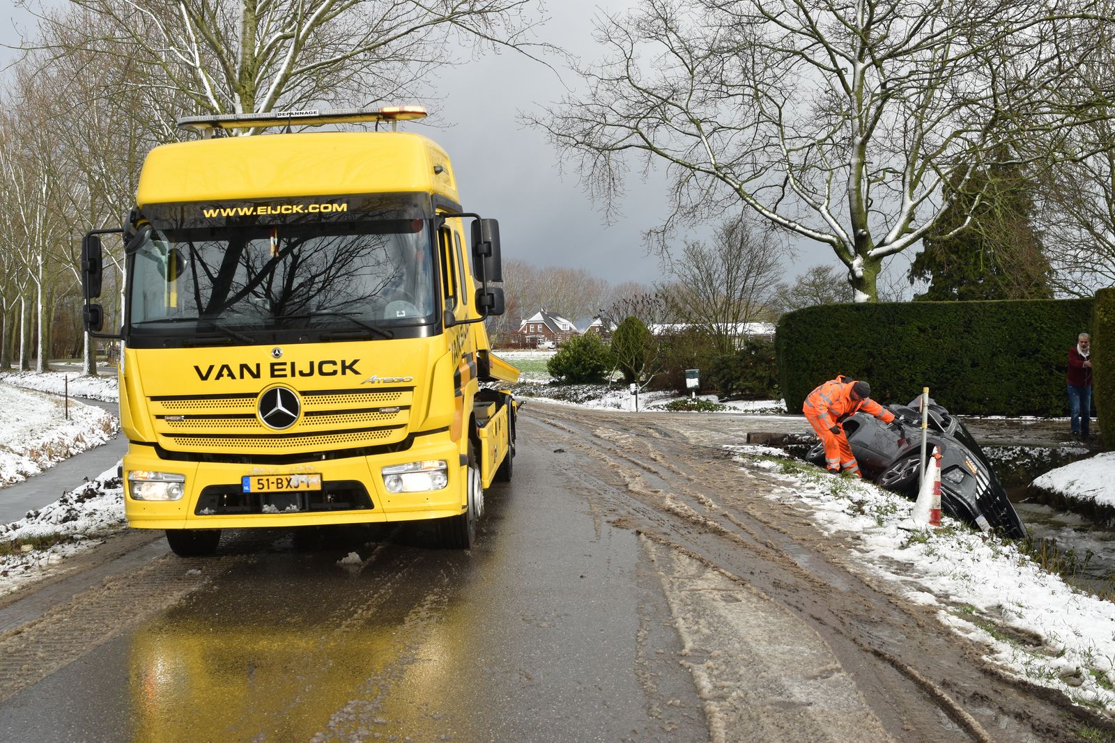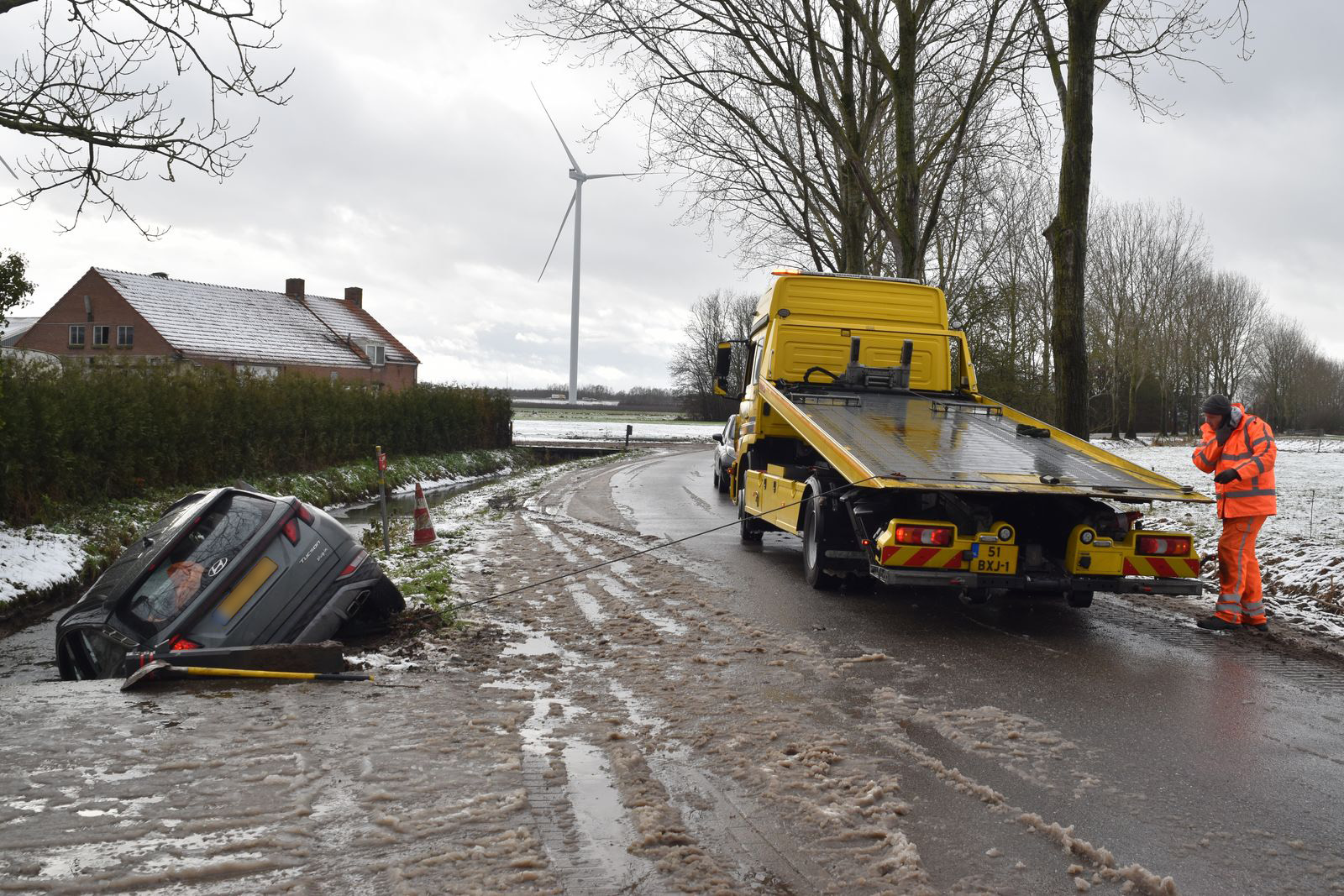 Een bergingsbedrijf werd ingeschakeld om het voertuig uit de modderige slootkant te halen. Door de drassige ondergrond zat de auto muurvast, maar na enige tijd lukte het alsnog om het voertuig te bergen. De schade aan de auto is aanzienlijk; vermoedelijk is deze total loss verklaard.