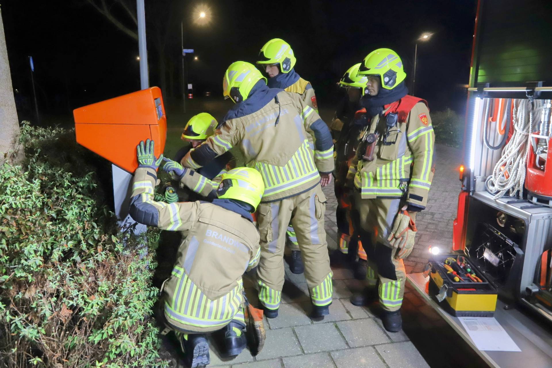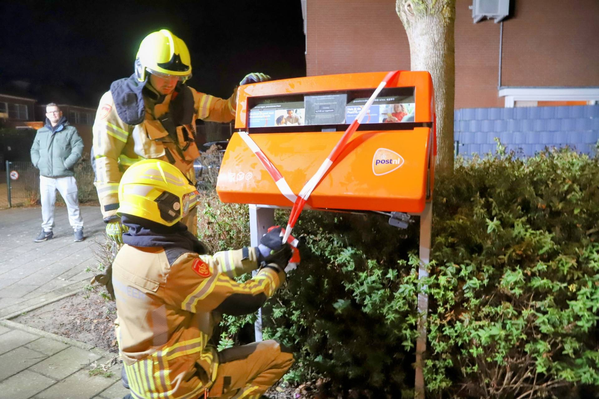 De brandweer opende de brievenbus en haalde de post eruit. De post zal op een andere locatie opnieuw worden gepost. De brievenbus is met lint afgezet om duidelijk te maken dat deze voorlopig buiten gebruik is.