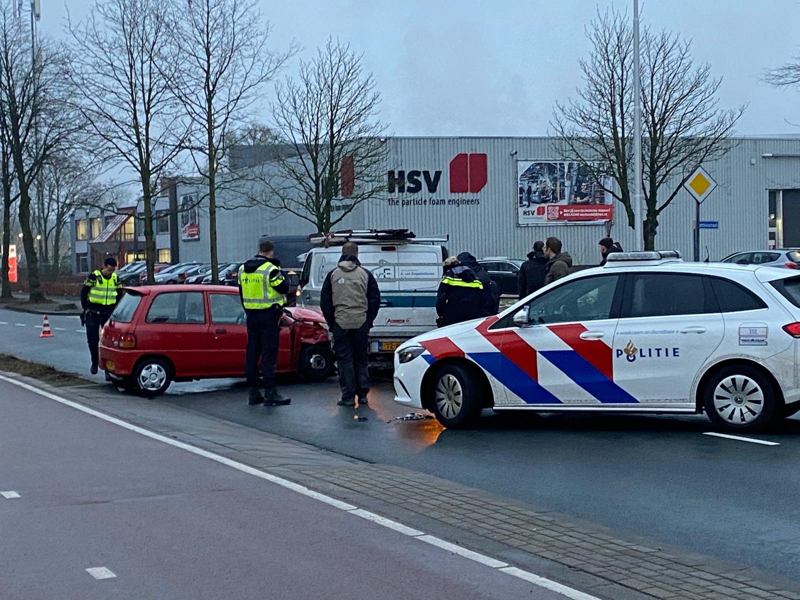 Een auto kwam in botsing met een bestelbus met aanhanger. De politie doet onderzoek naar de exacte toedracht van het incident.