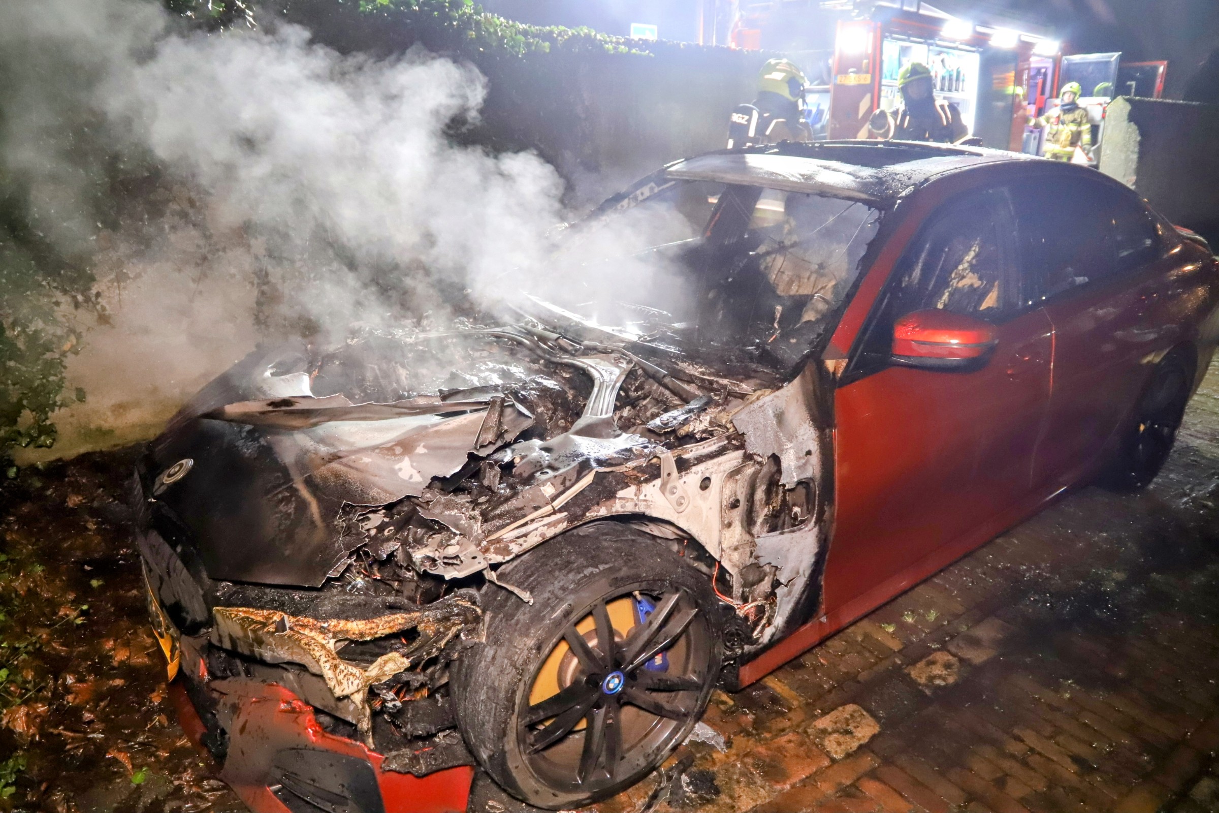 Bij aankomst trof de brandweer een personenauto aan die in lichterlaaie stond op een parkeerplaats. Omwonenden meldden een harde knal te hebben gehoord, waarna zij zagen dat het voertuig in brand stond.