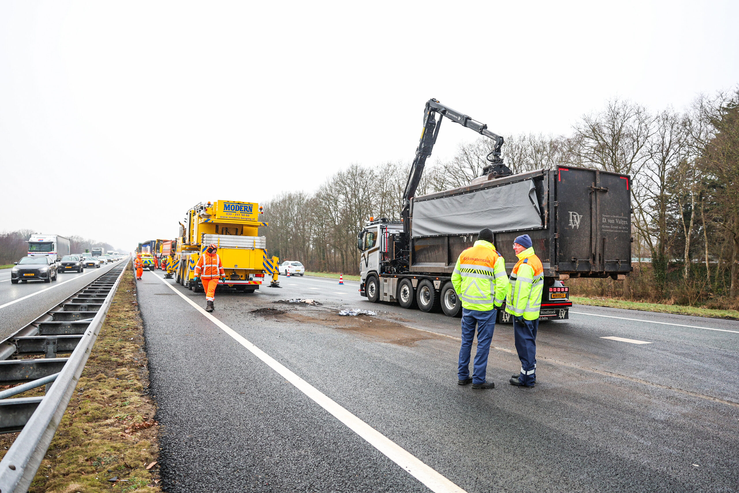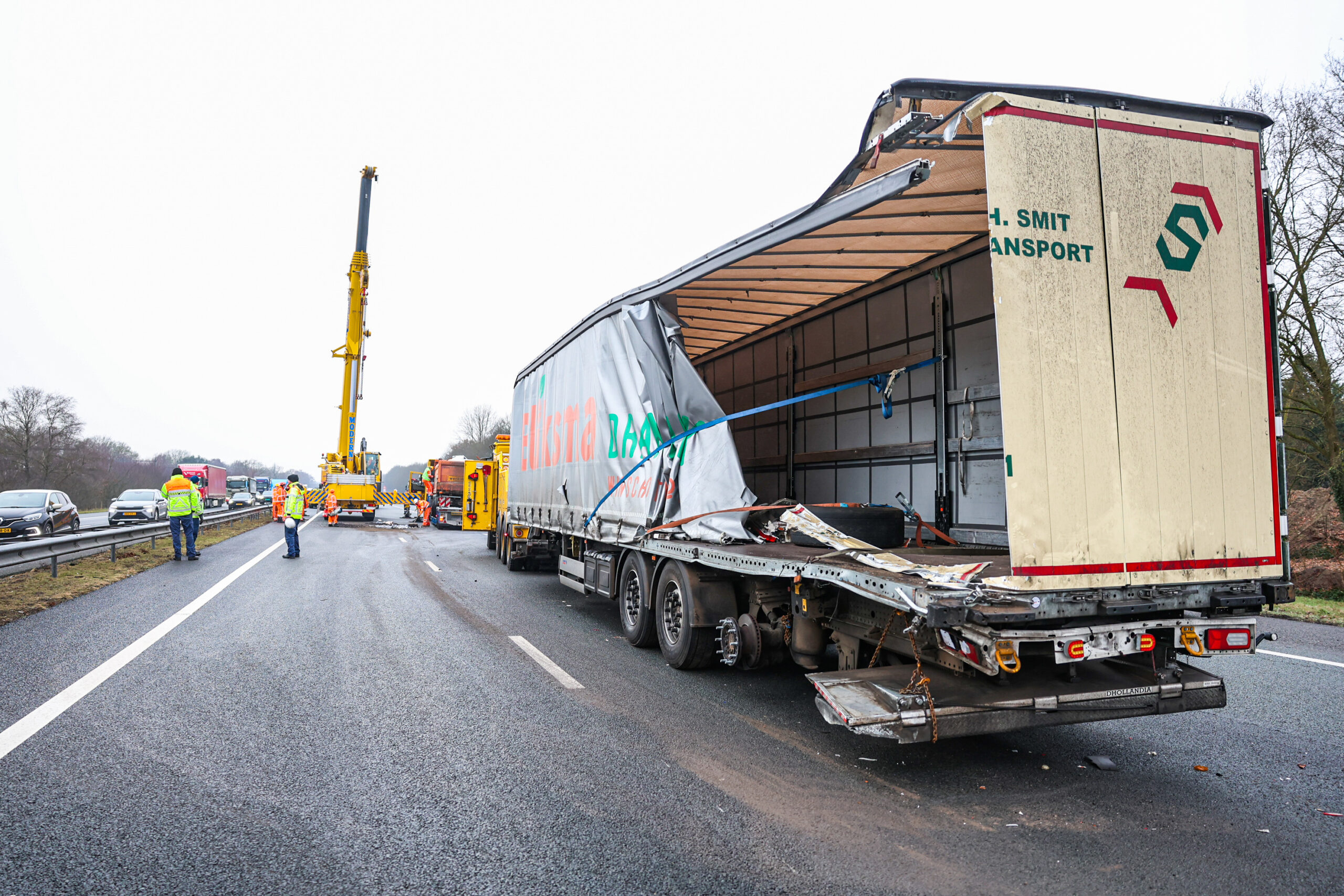 STROE – Dinsdagochtend is de A1 tussen Stroe en Voorthuizen lange tijd afgesloten geweest na een ernstig ongeval met drie vrachtwagens. Eén van de vrachtwagens, beladen met 30 ton gefreesd asfalt, moest eerst worden geleegd voordat berging mogelijk was.