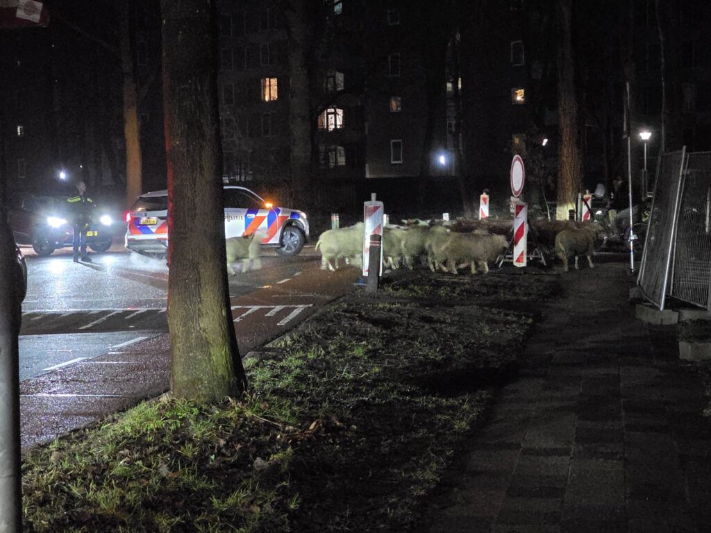 HARDERWIJK – Voorbijgangers keken woensdagochtend vroeg vreemd op toen een kudde van ongeveer vijftig schapen over de weg liep bij de rotonde van de Marijkeweg en de Kortenoord Allee. De dieren zorgden voor een onverwachte situatie in het verkeer.
