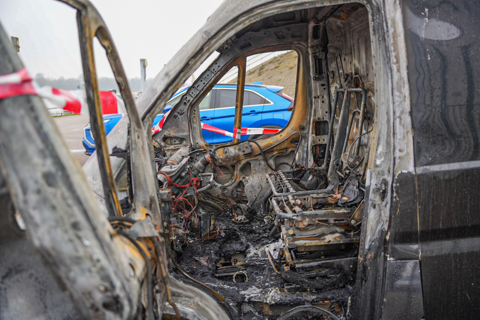 De melding kwam even na 01.10 uur binnen, waarna de brandweer werd gealarmeerd. Bij aankomst stond de geparkeerde bestelbus al in brand aan de voorzijde. Ondanks de snelle inzet kon niet worden voorkomen dat het voertuig volledig uitbrandde.