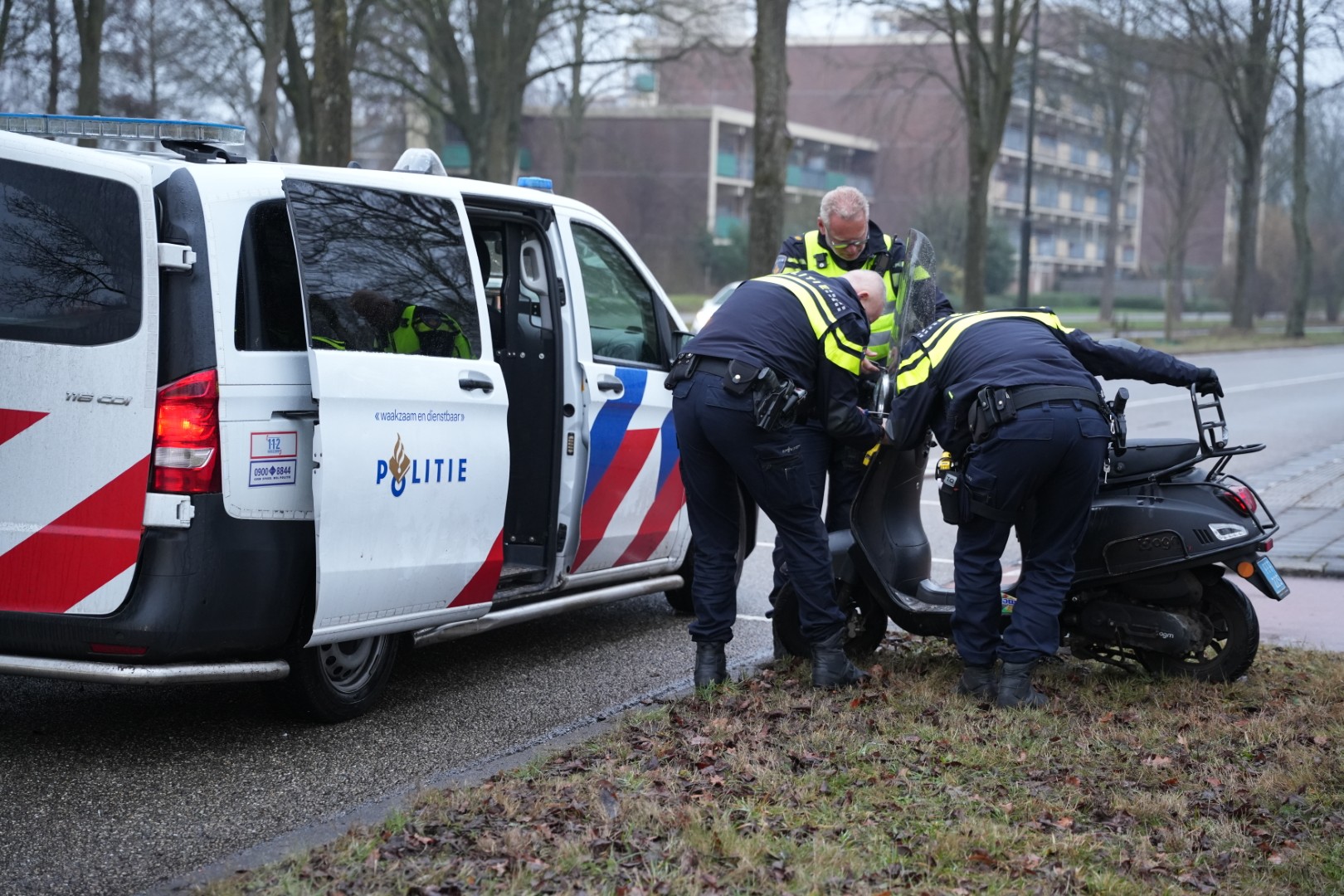 Een bergingsbedrijf heeft de beschadigde auto afgesleept. De scooter is in een politiebusje geladen en wordt op het politiebureau gecontroleerd op mogelijke technische gebreken.