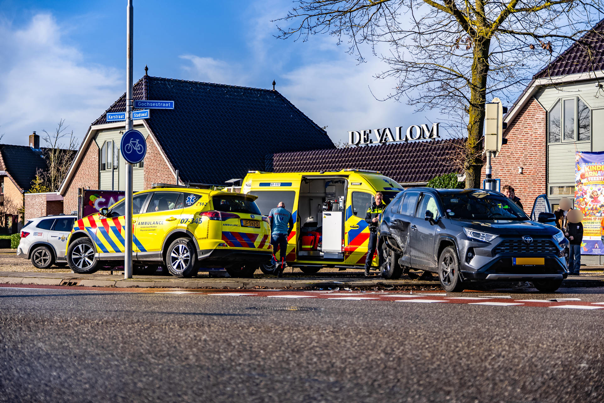 De inzittenden van beide voertuigen zijn gecontroleerd door ambulancepersoneel, maar niemand raakte gewond. Beide voertuigen liepen schade op en zijn door een berger weggesleept.
