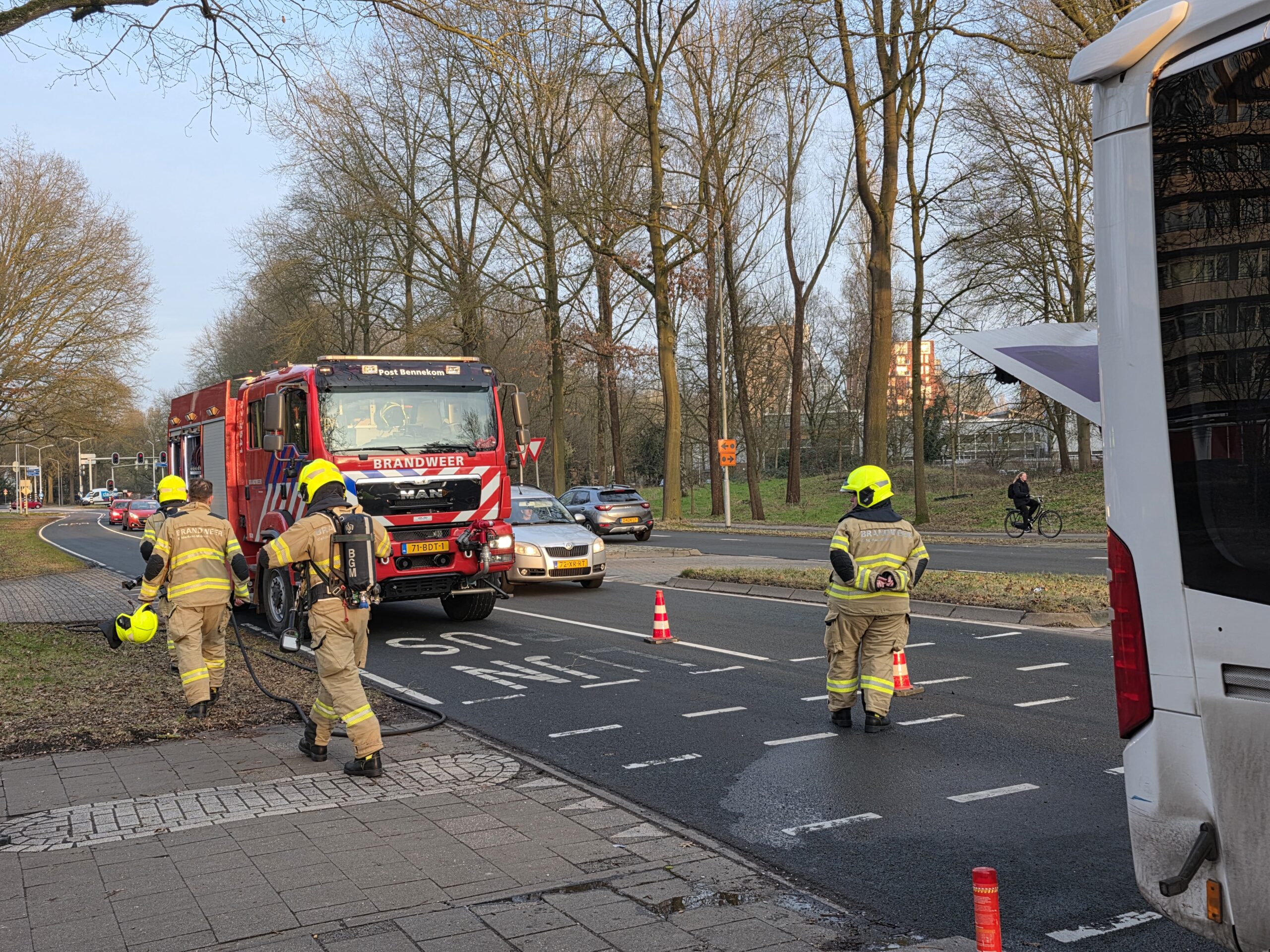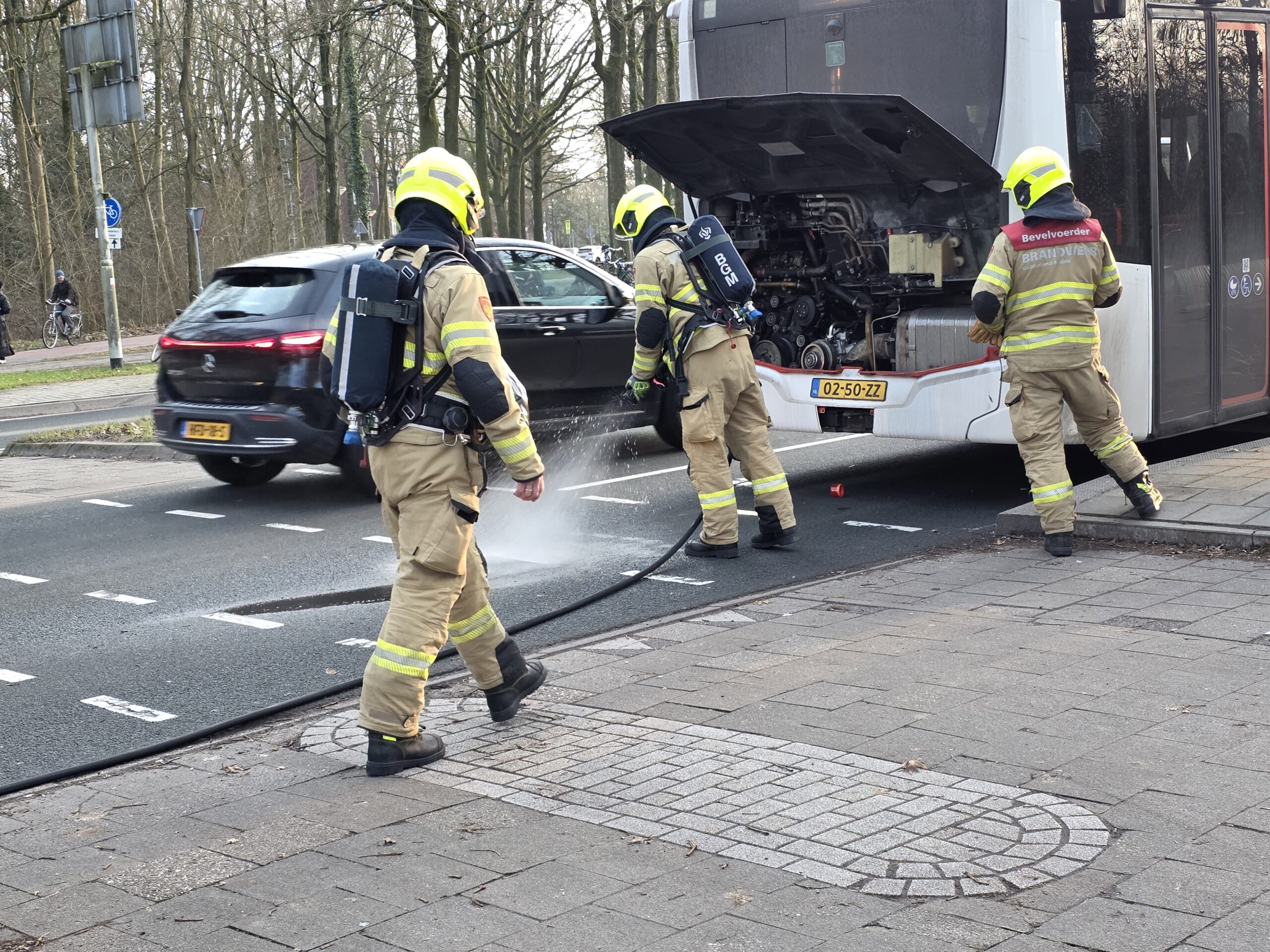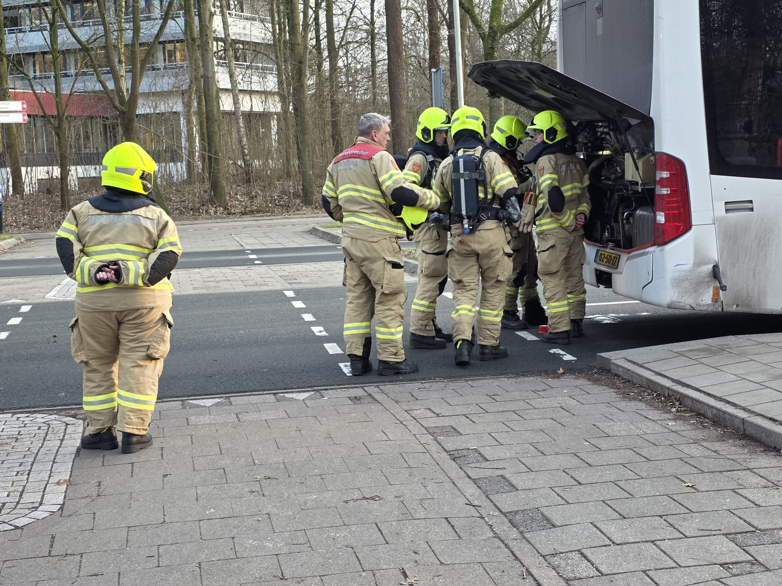 Na de inzet is de bus overgedragen aan een monteur van de vervoersmaatschappij. Het voertuig kan niet meer verder rijden en zal worden afgesleept. Bij het incident raakte niemand gewond.