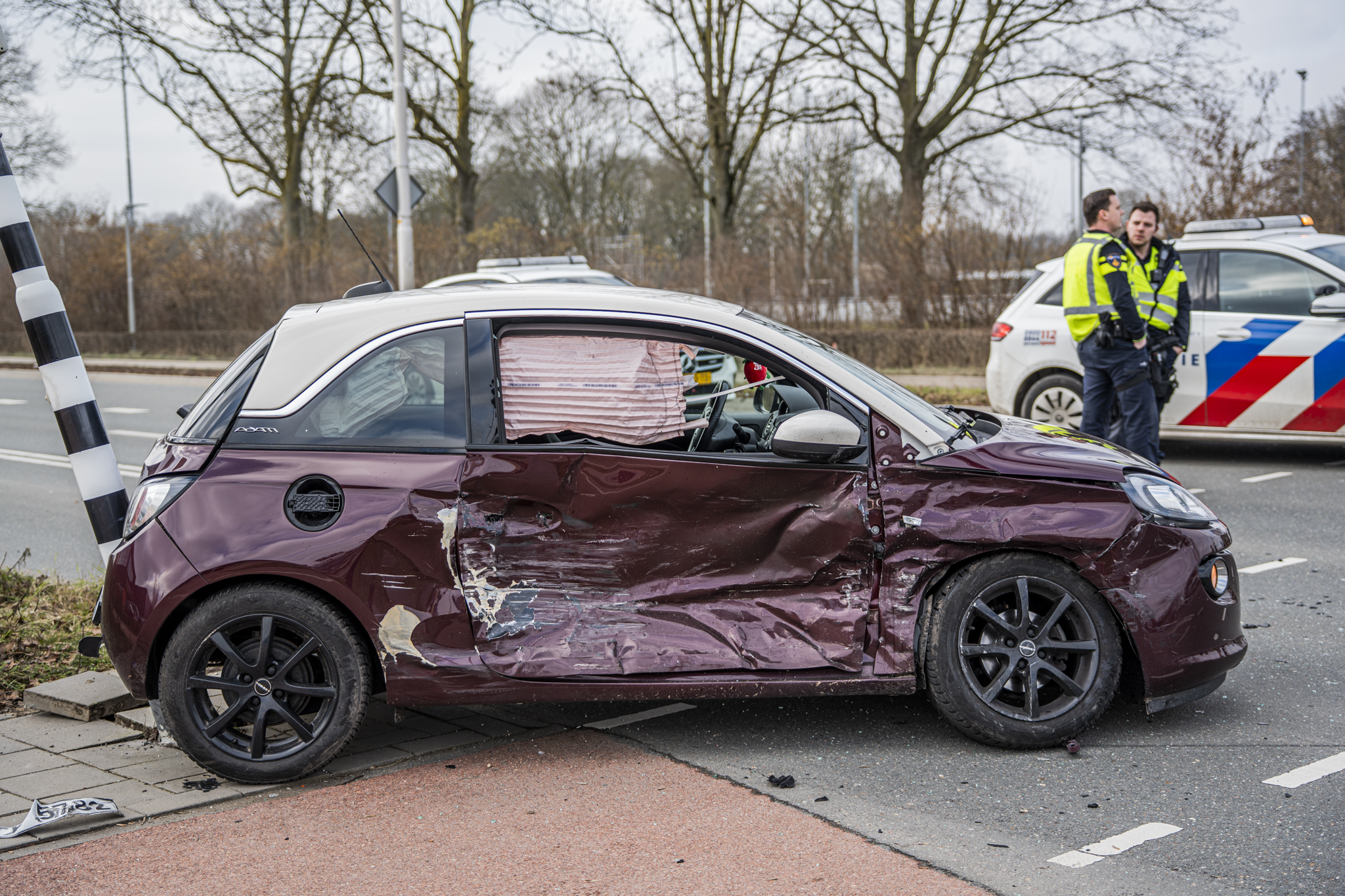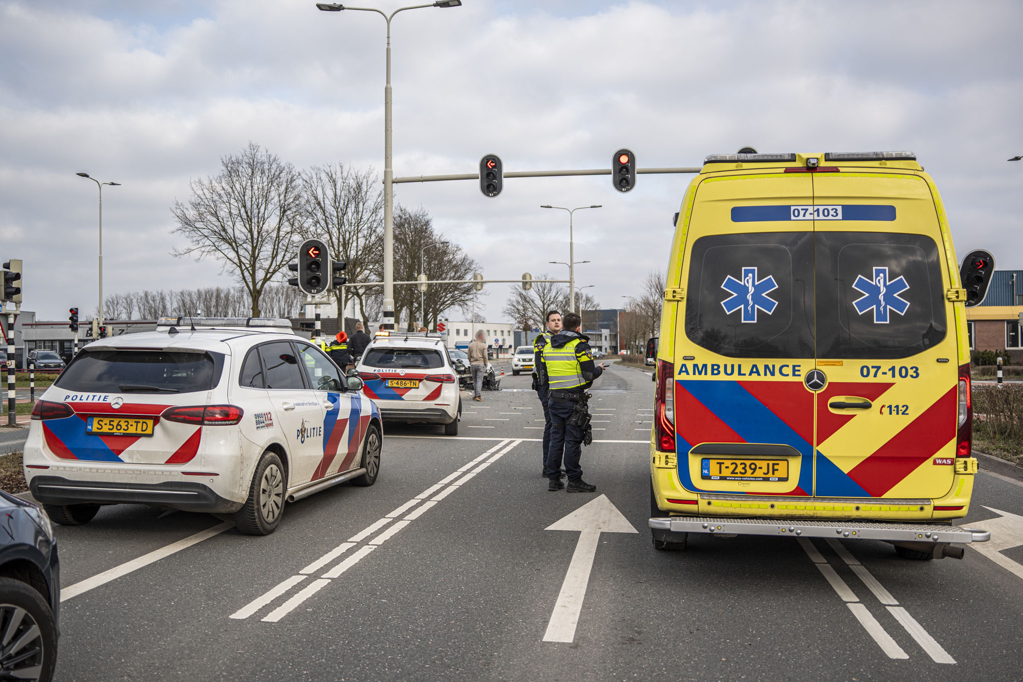 De melding kwam even na 14:30 uur binnen bij de meldkamer, waarna meerdere politie-eenheden en ambulances werden ingezet. Door nog onbekende oorzaak botsten twee personenauto’s op elkaar, waarbij een Mercedes in de zijkant van een Opel reed. De Opel kwam vervolgens achteruit tegen een verkeerslicht tot stilstand. De inzittenden zijn ter plaatse nagekeken door ambulancepersoneel; het letsel bleek beperkt.