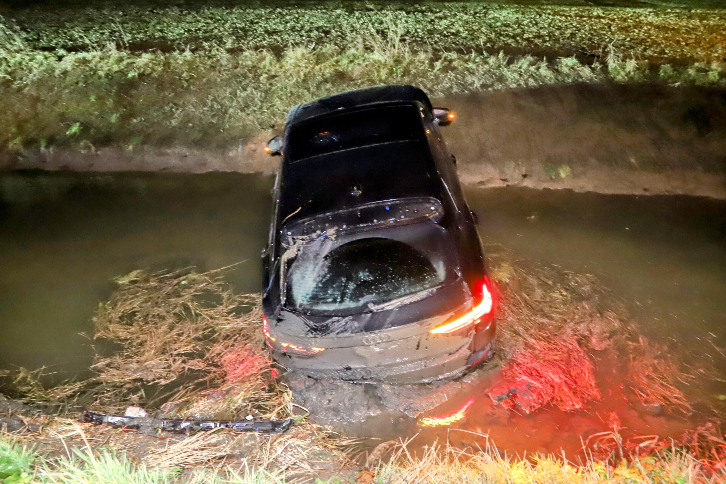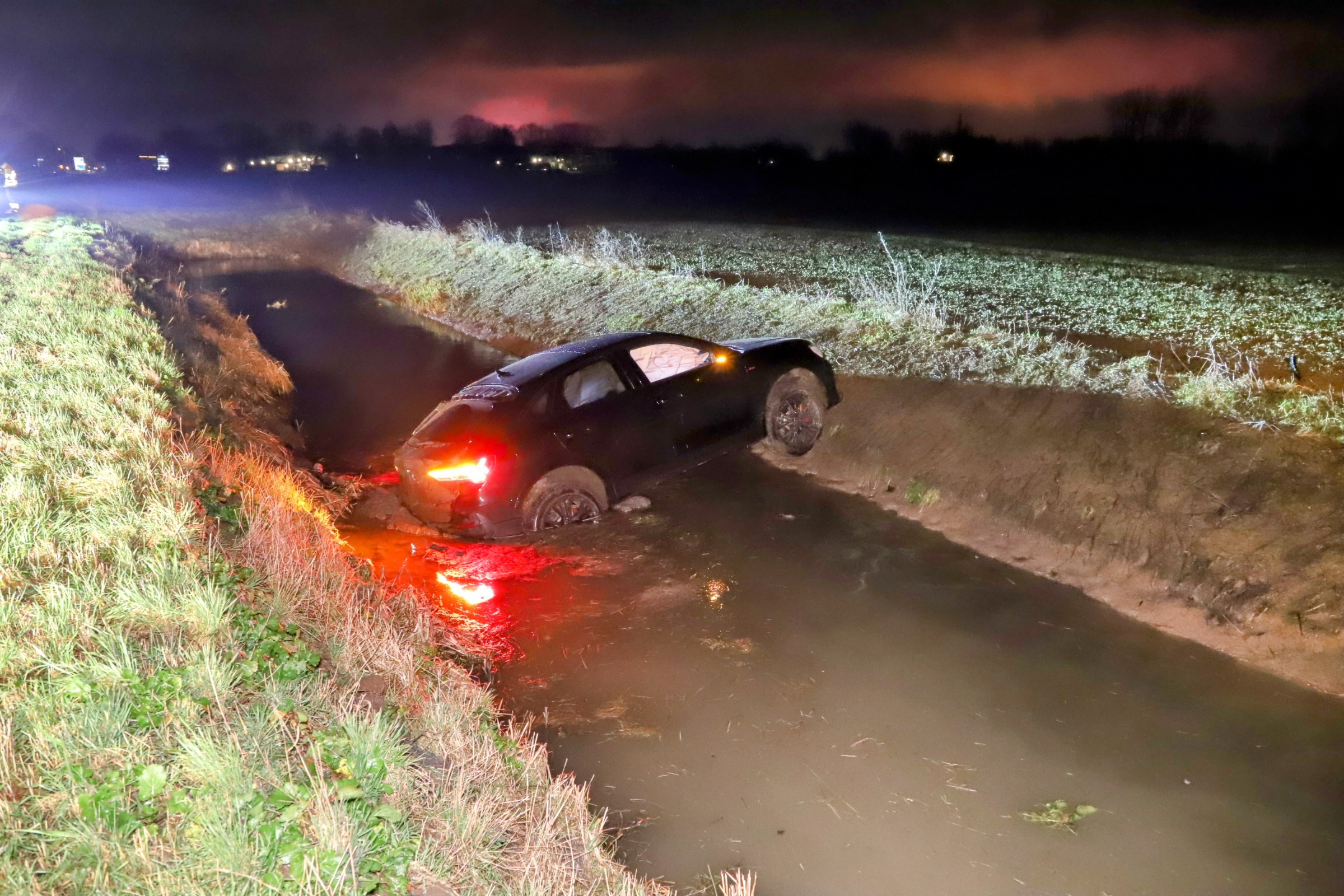 Een personenauto raakte van de weg en kwam aan de overzijde in een sloot tot stilstand. Door de impact werden de airbags geactiveerd. De bestuurder bleef bij het ongeval ongedeerd.