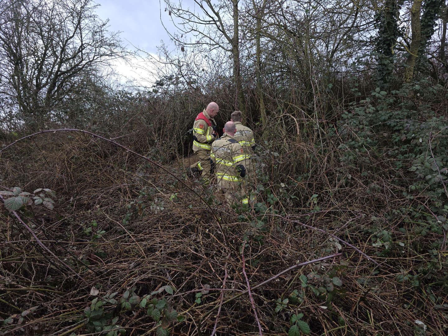 Nog voordat de brandweer arriveerde, kwam de hond zelfstandig uit het hol nadat de eigenaar knakworsten had gehaald om het dier te lokken. De hond bleek ongedeerd. Verdere inzet van hulpdiensten was niet nodig. De eigenaren reageerden opgelucht op de goede afloop.