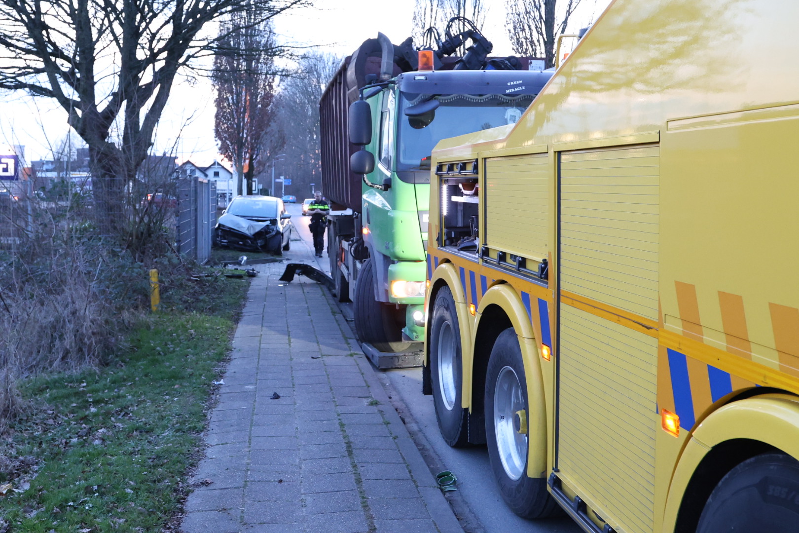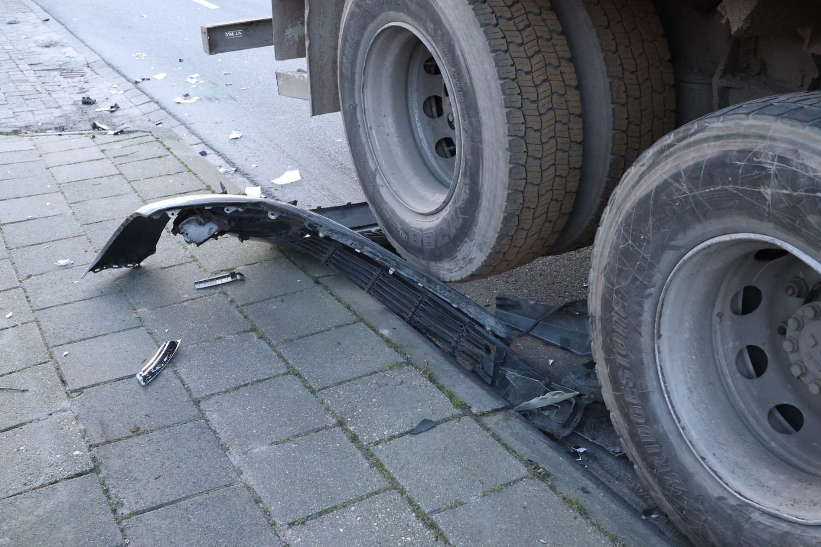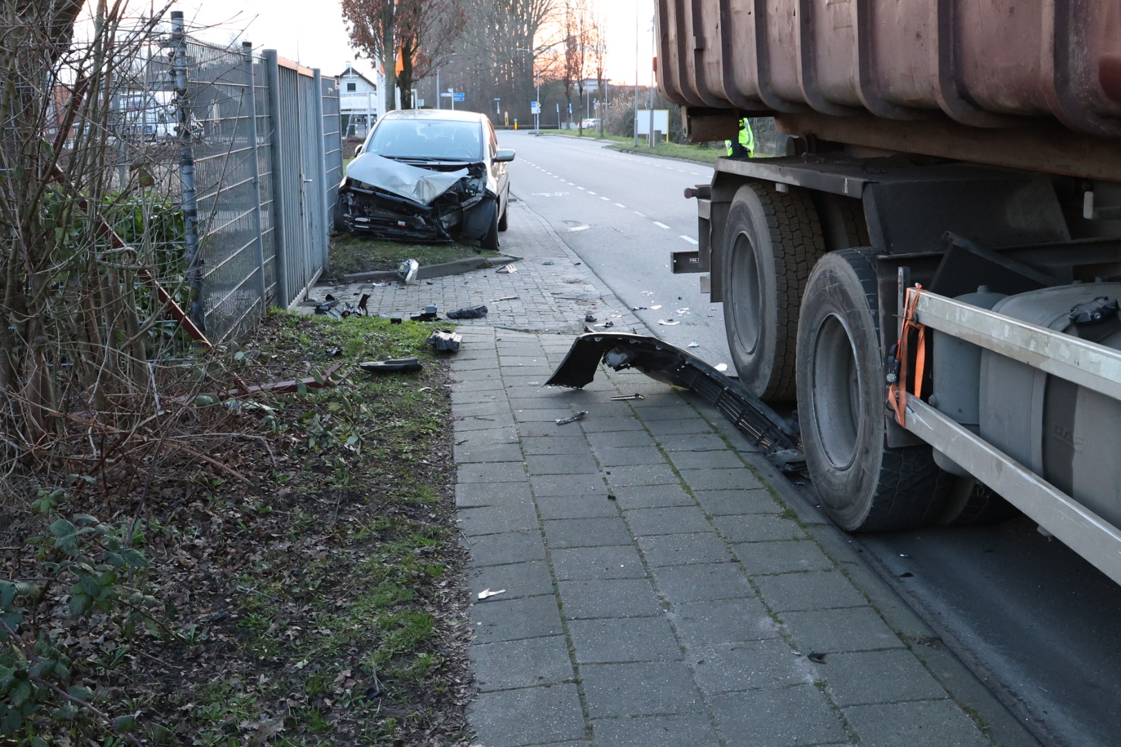 Auto botst op vrachtwagen bij uitrit bouwmarkt