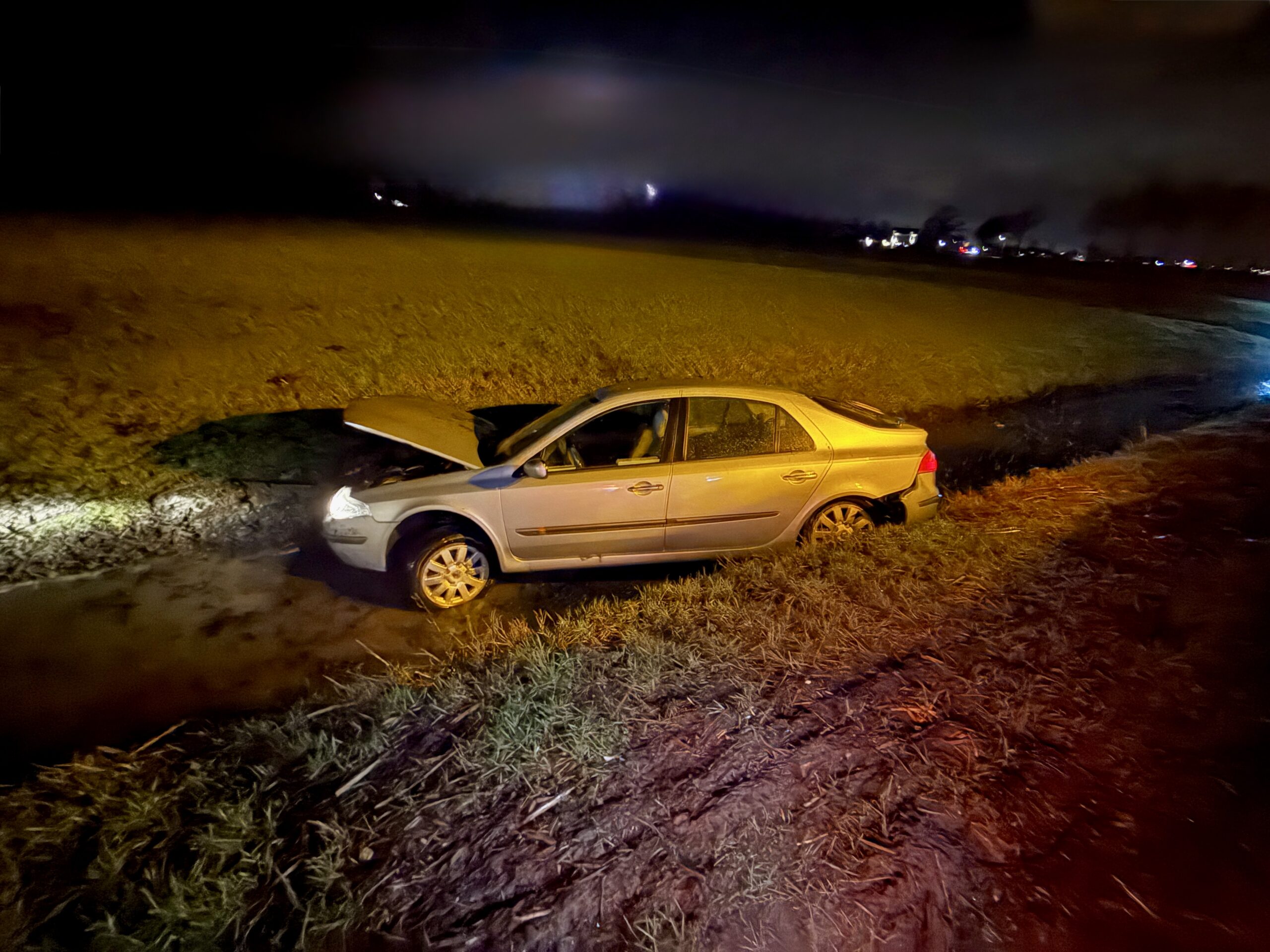 Een personenauto met twee inzittenden raakte van de weg en belandde in een greppel. Bij het ongeval raakte niemand gewond.