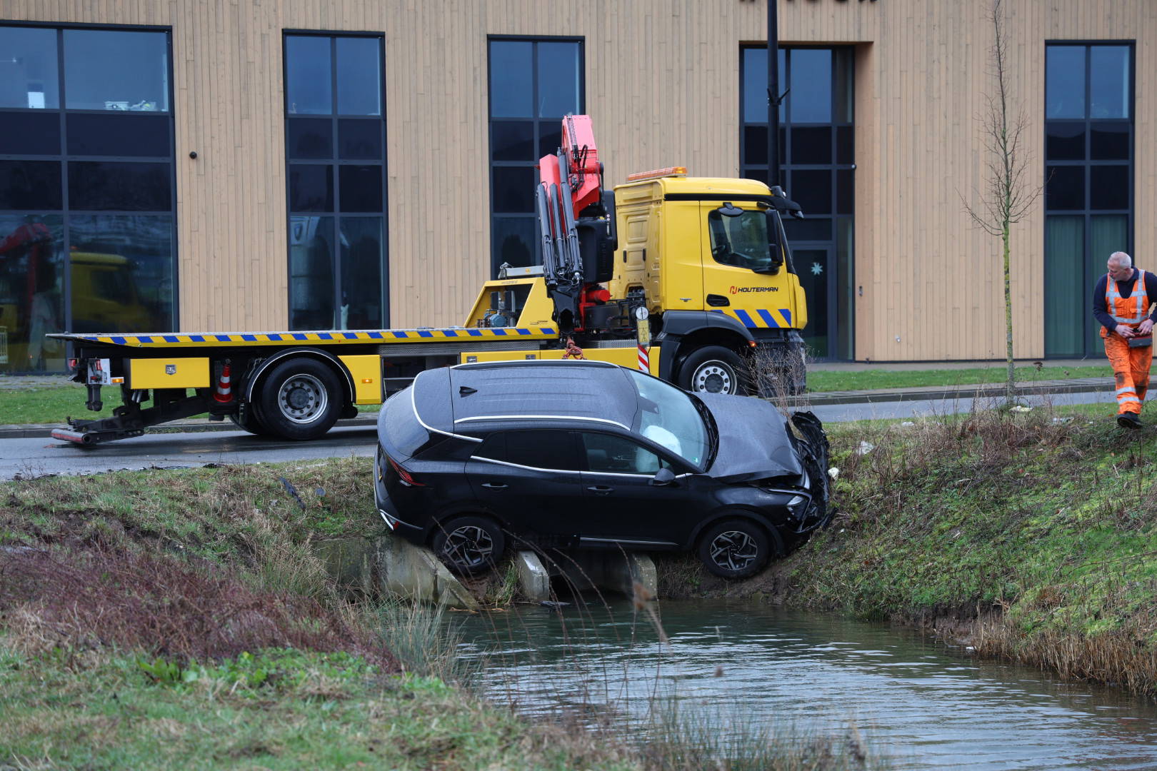 Auto belandt op duiker bij botsing