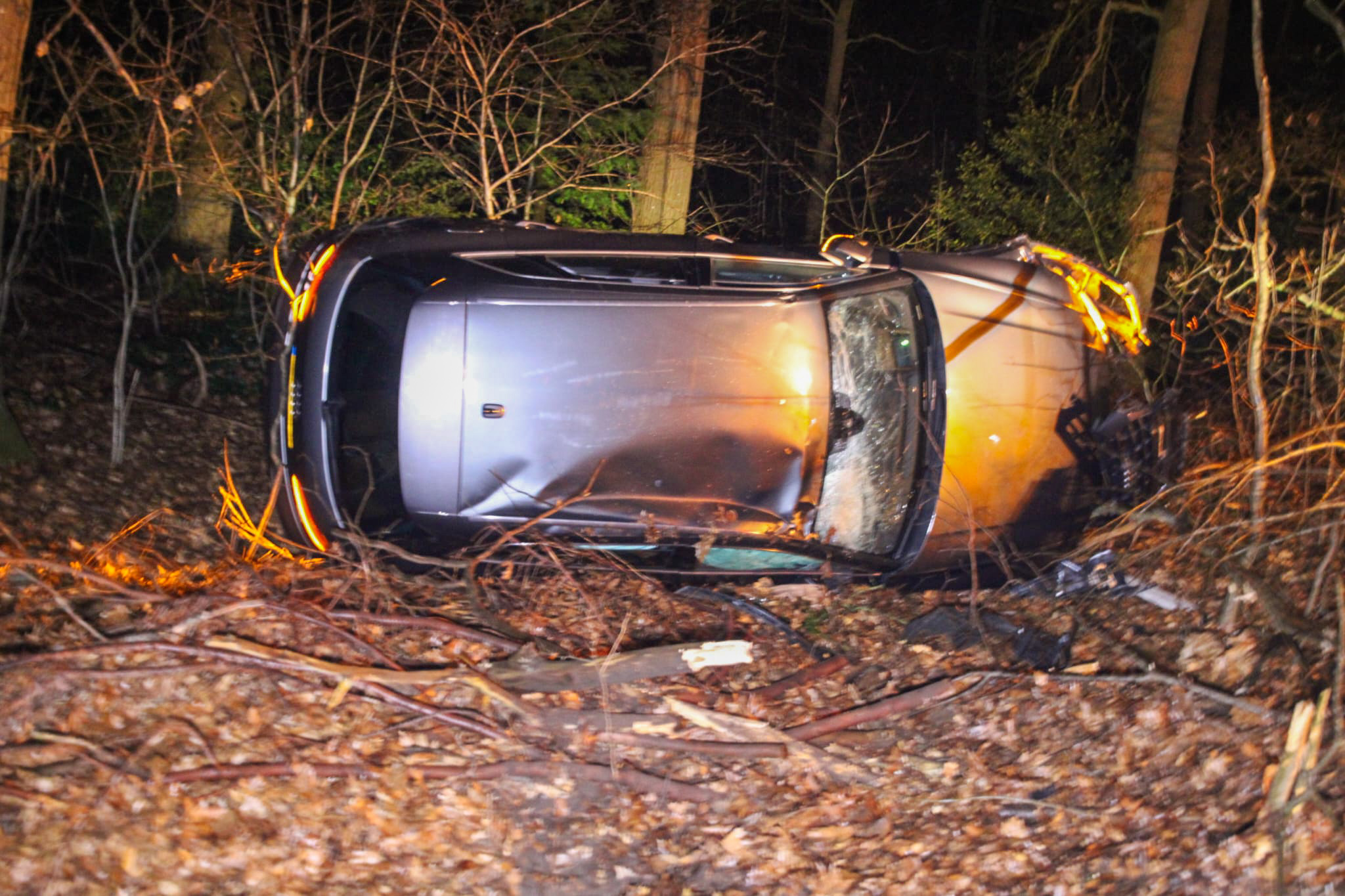 VOORTHUIZEN – Dinsdagavond rond 20.20 uur is een auto van de weg geraakt en op zijn zijkant in de bosschages beland aan de Tolnegenweg in Voorthuizen.
