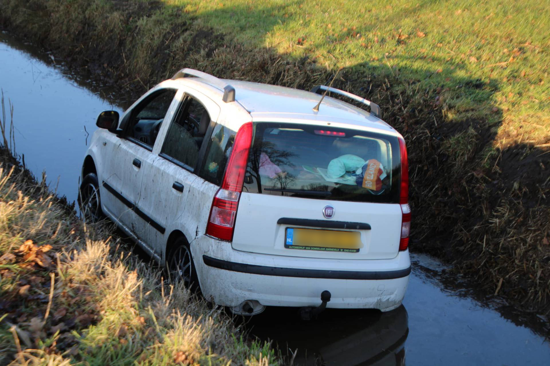 BARNEVELD – Een automobilist is woensdagmiddag met zijn voertuig in een sloot beland aan de Thorbeckelaan, ter hoogte van de rotonde met de Nijkerkerweg.