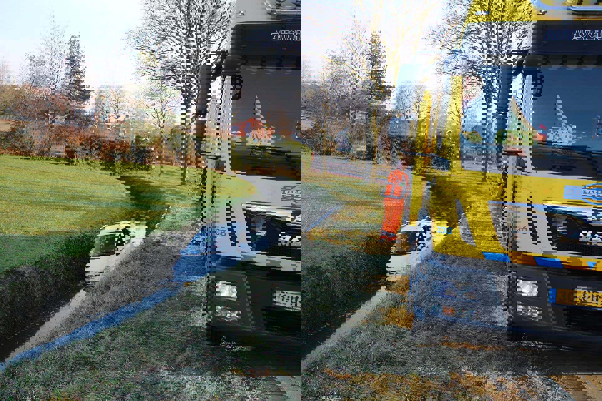 Automobilist belandt met auto in sloot en wordt naar ziekenhuis gebracht