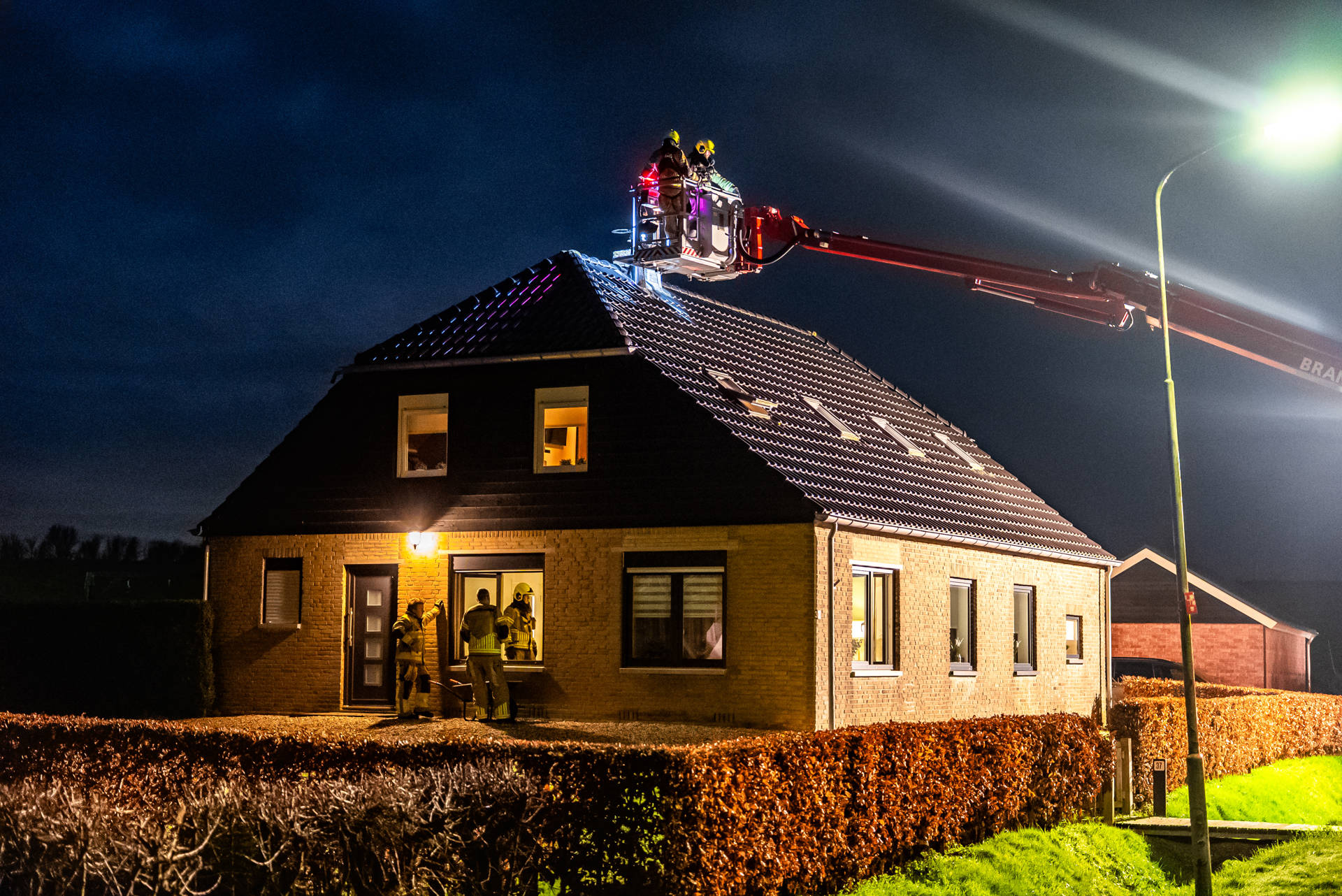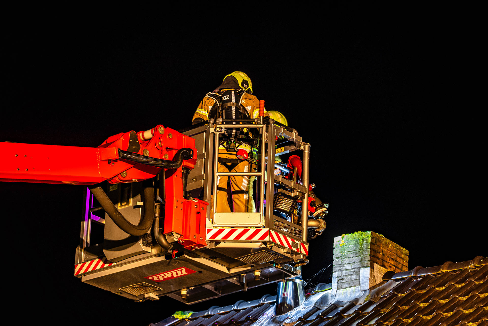 De bewoner merkte dat rook vanuit de open haard de woonkamer binnentrok en heeft daarop zelf met een brandblusser het vuur gedoofd. Vervolgens werd 112 gebeld. De brandweer controleerde de schoorsteen met behulp van de hoogwerker en heeft waar nodig nabluswerkzaamheden uitgevoerd.