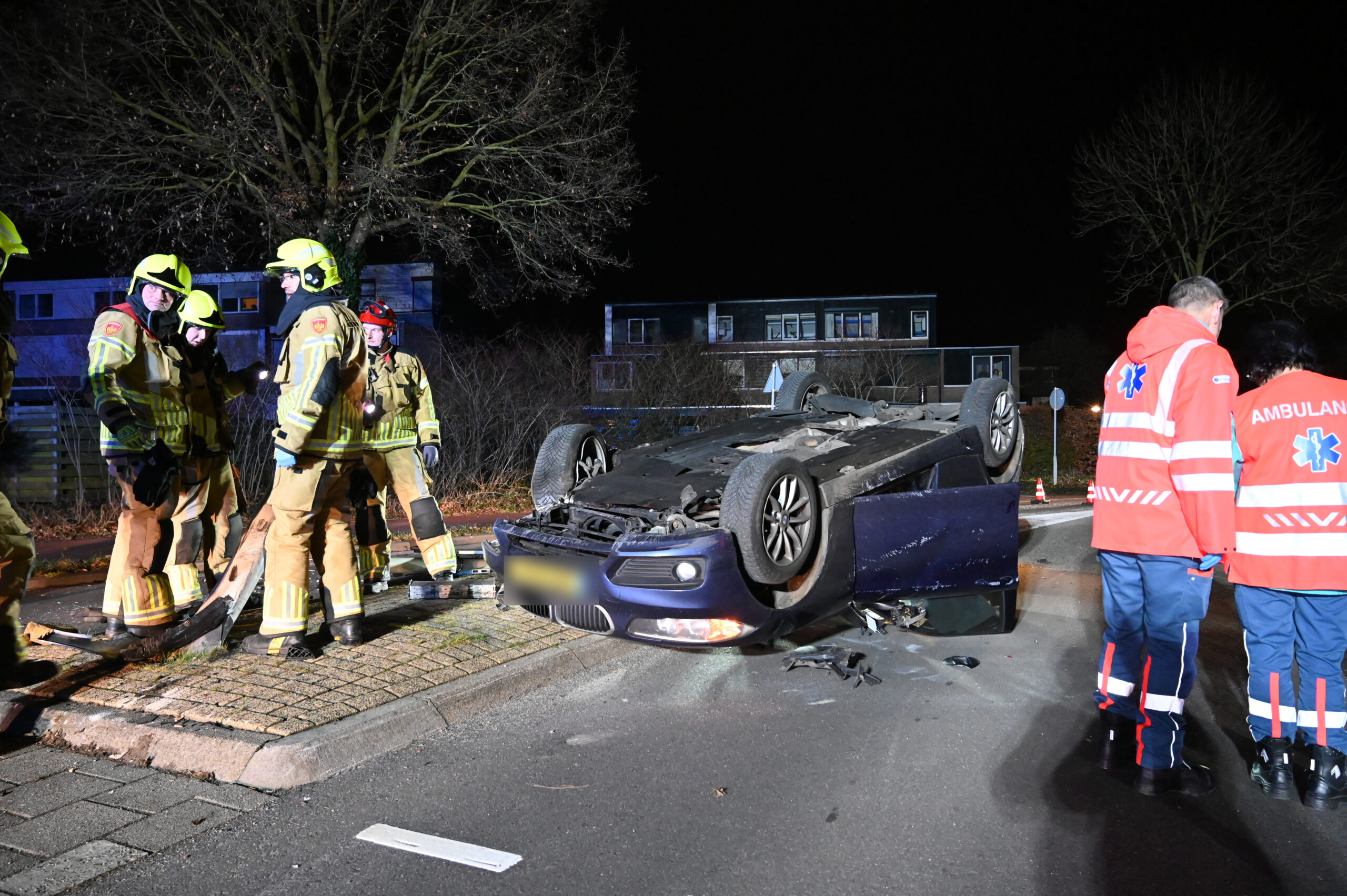 MALDEN – Vrijdagavond heeft op De Rogge in Malden een eenzijdig verkeersongeval plaatsgevonden. Een BMW raakte door nog onbekende oorzaak van de weg, botste tegen een lantaarnpaal en sloeg vervolgens over de kop.