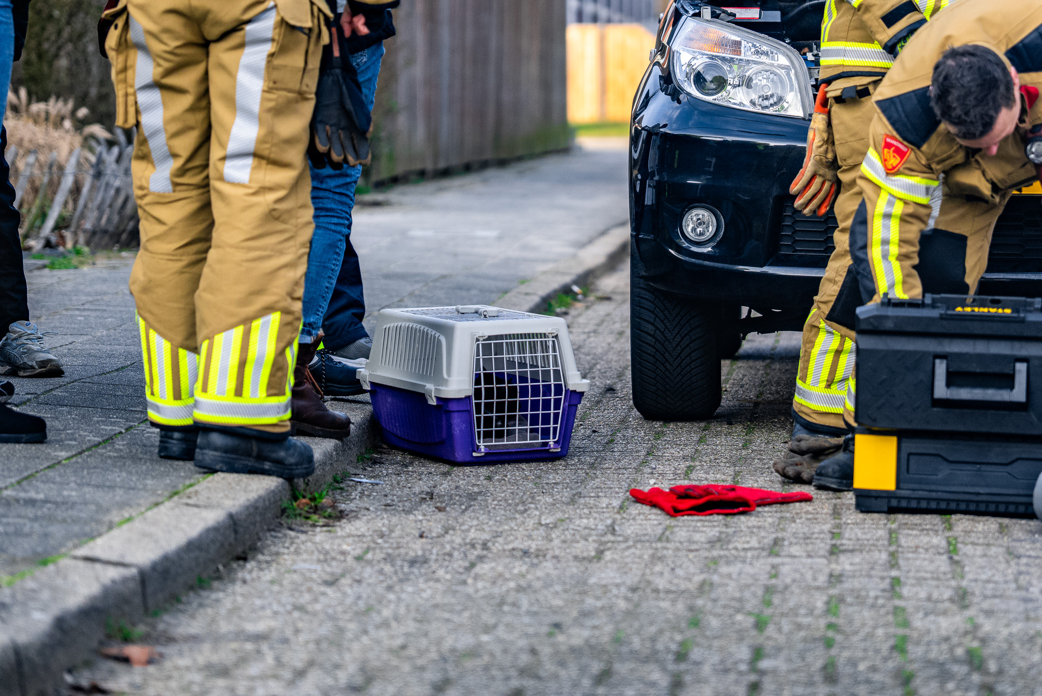 WIJCHEN – Woensdagmiddag rond 14:15 uur zijn de brandweer en de dierenambulance gealarmeerd voor een kat die vastzat in het motorcompartiment van een geparkeerde auto aan de Heilige Stoel 48e straat.