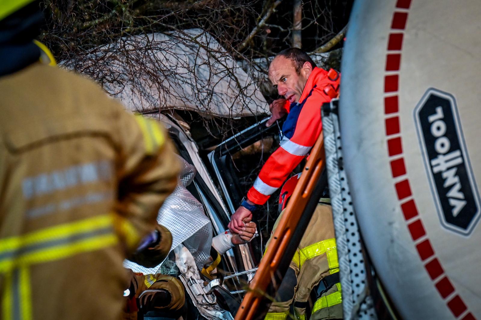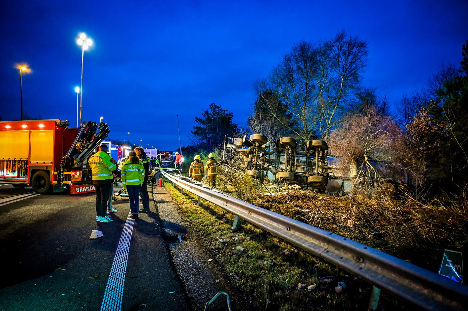 Chauffeur na bijna twee uur bevrijd na ernstig ongeval met vrachtwagen op snelweg