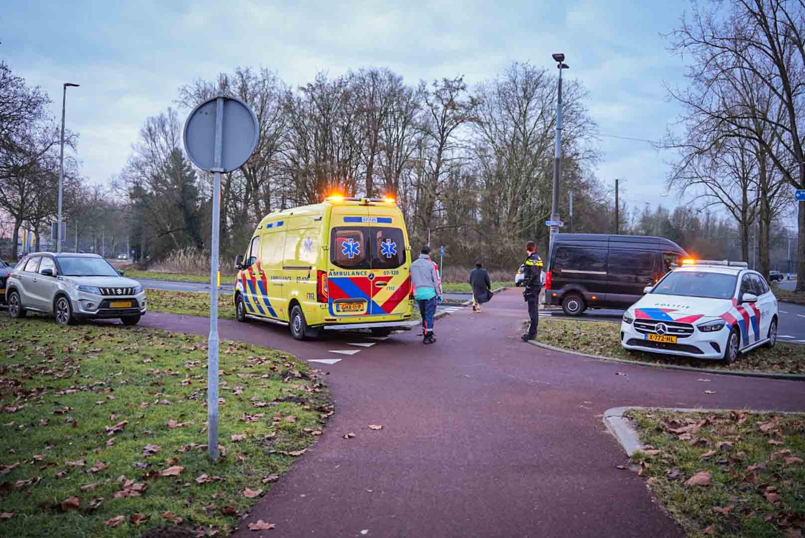 De fietsster kwam ten val en liep verwondingen op. Ze is ter plaatse behandeld door ambulancepersoneel. Het is niet duidelijk of zij naar het ziekenhuis is vervoerd.