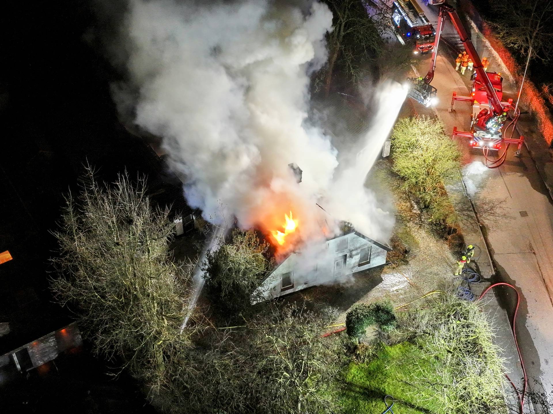 Bij aankomst van de brandweer sloegen de vlammen uit de woning, waarna werd opgeschaald naar een grote brand. De bewoners konden het pand op tijd verlaten. Meerdere brandweerkorpsen kwamen ter plaatse en er werd onder meer een waterwagen ingezet. De rook was in de wijde omgeving te ruiken.