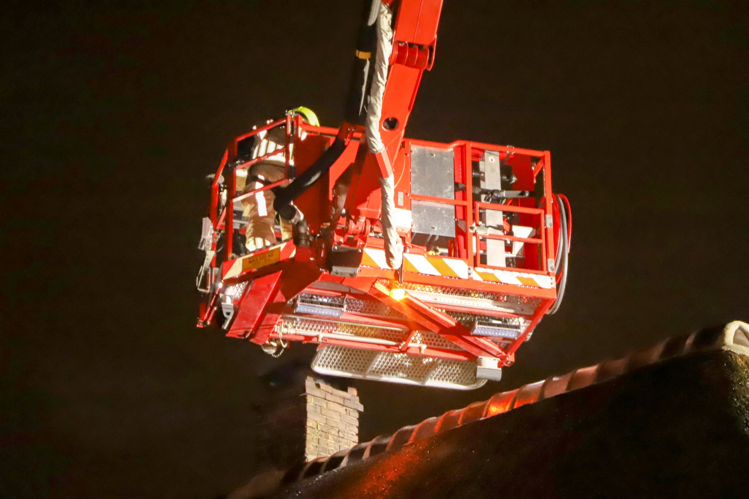 Bij aankomst van de brandweer sloegen de vlammen uit de schoorsteen. Met behulp van een hoogwerker is de schoorsteen geveegd om verdere uitbreiding van de brand te voorkomen.