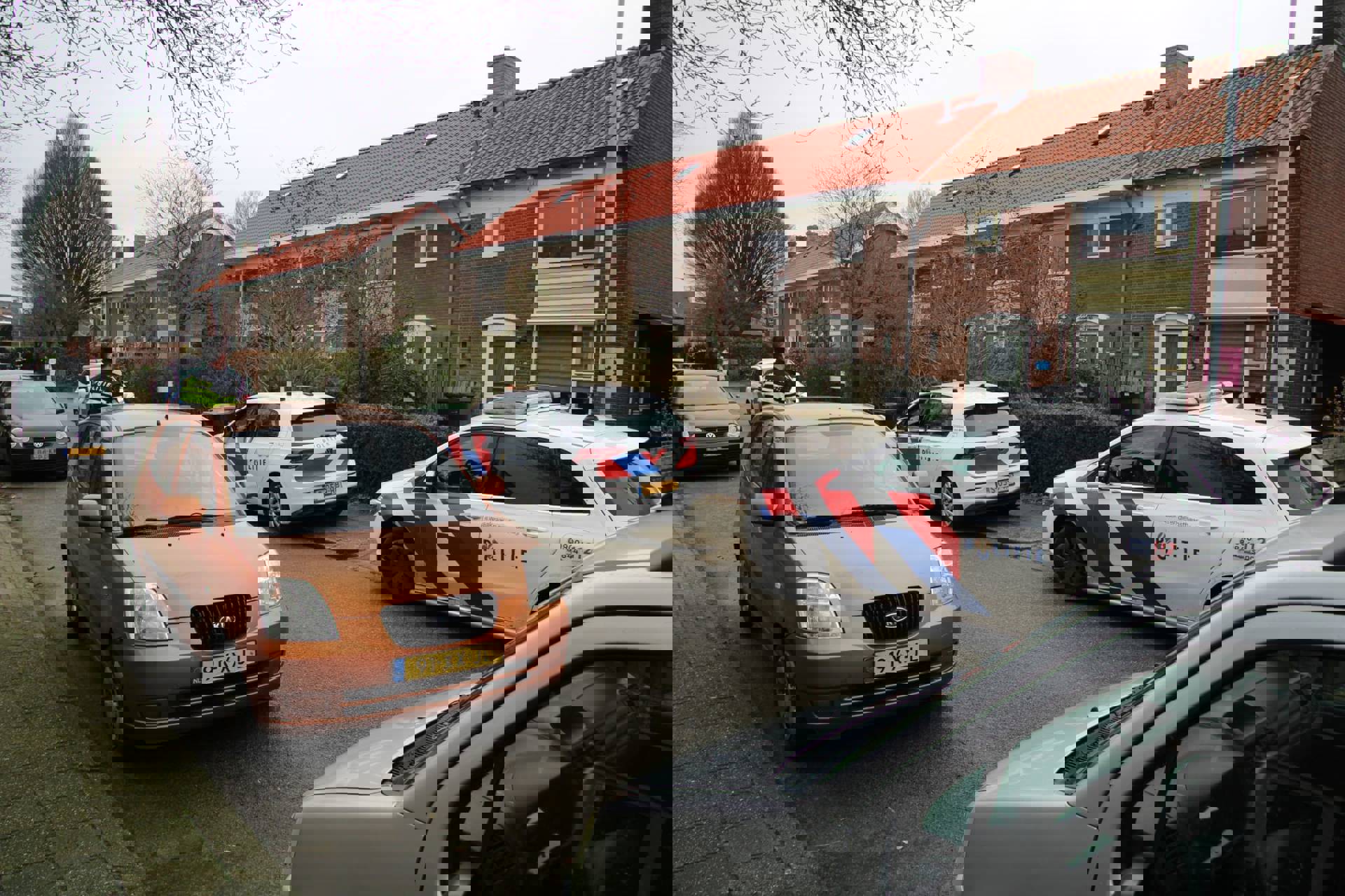 In de straat wordt een buurtonderzoek uitgevoerd. De politie onderzoekt de rol van de verdachten bij de oplichtingszaak.