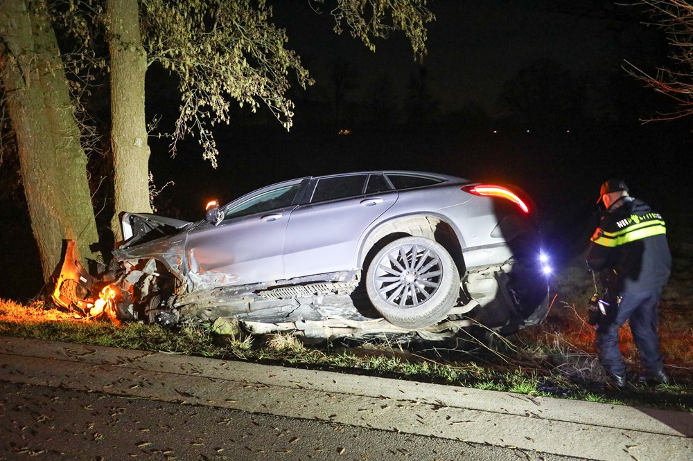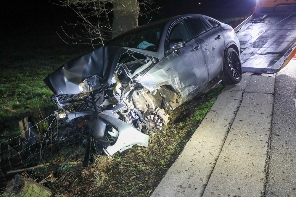 STROE – In de nacht van zaterdag op zondag is rond 04.10 uur een automobilist met zijn Mercedes van de weg geraakt in Stroe.