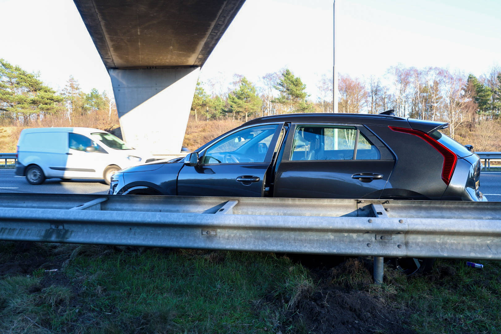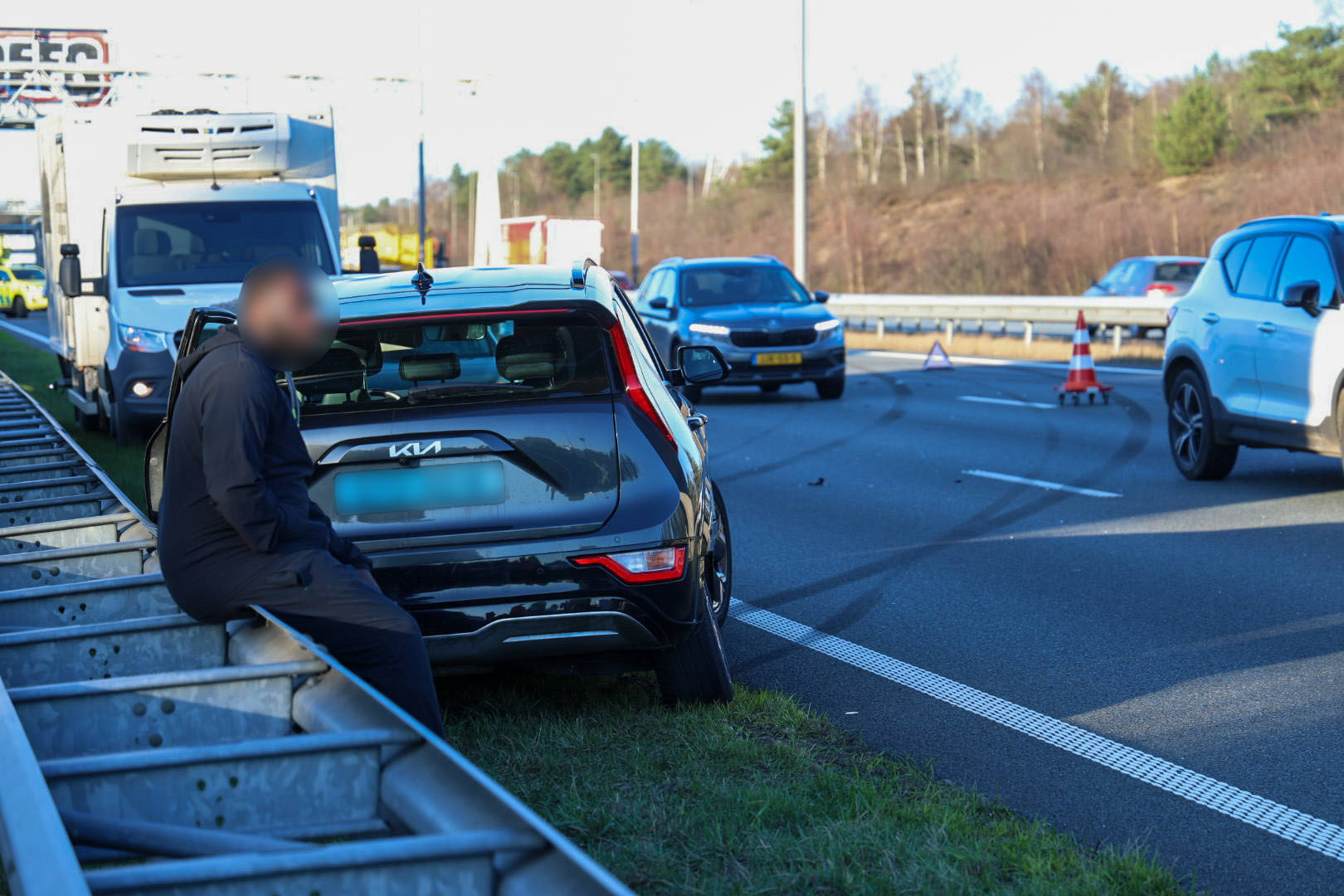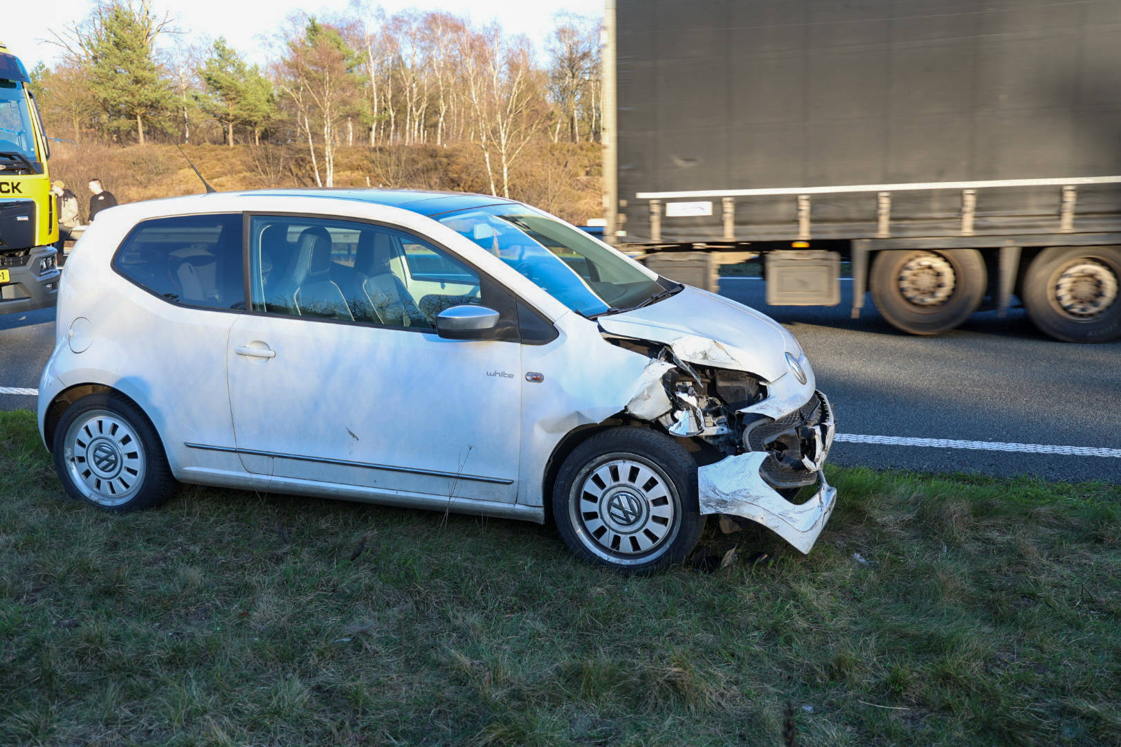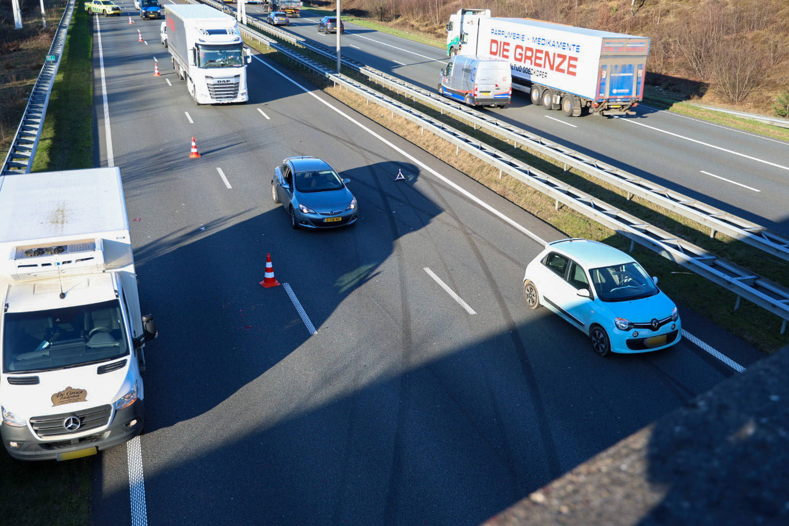 Het ongeluk vond maandagmiddag plaats, toen drie voertuigen op elkaar botsten. De oorzaak van de aanrijding is nog niet vastgesteld. Op het wegdek waren meerdere slipsporen zichtbaar. Ambulancepersoneel controleerde de inzittenden ter plaatse, maar niemand hoefde voor verdere behandeling naar het ziekenhuis te worden vervoerd.