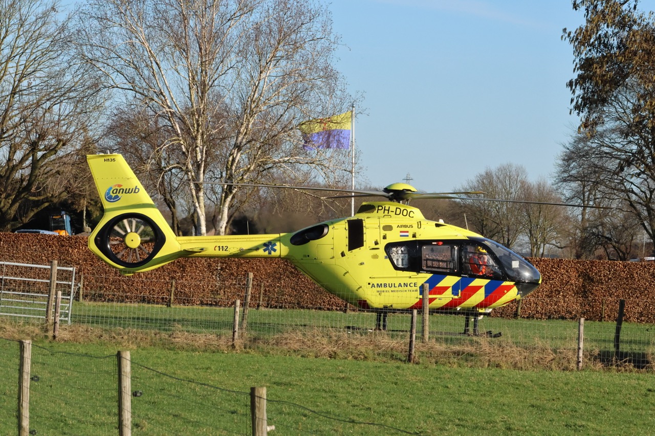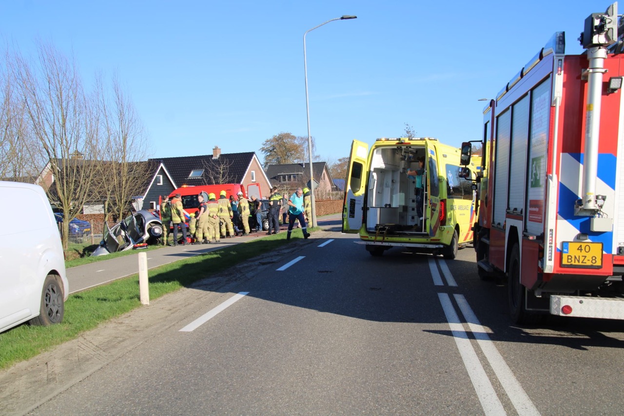 Twee personenauto’s botsten door nog onbekende oorzaak op elkaar. Meerdere ambulances, brandweer en politie kwamen ter plaatse. Ook een traumahelikopter werd opgeroepen en landde bij het incident.