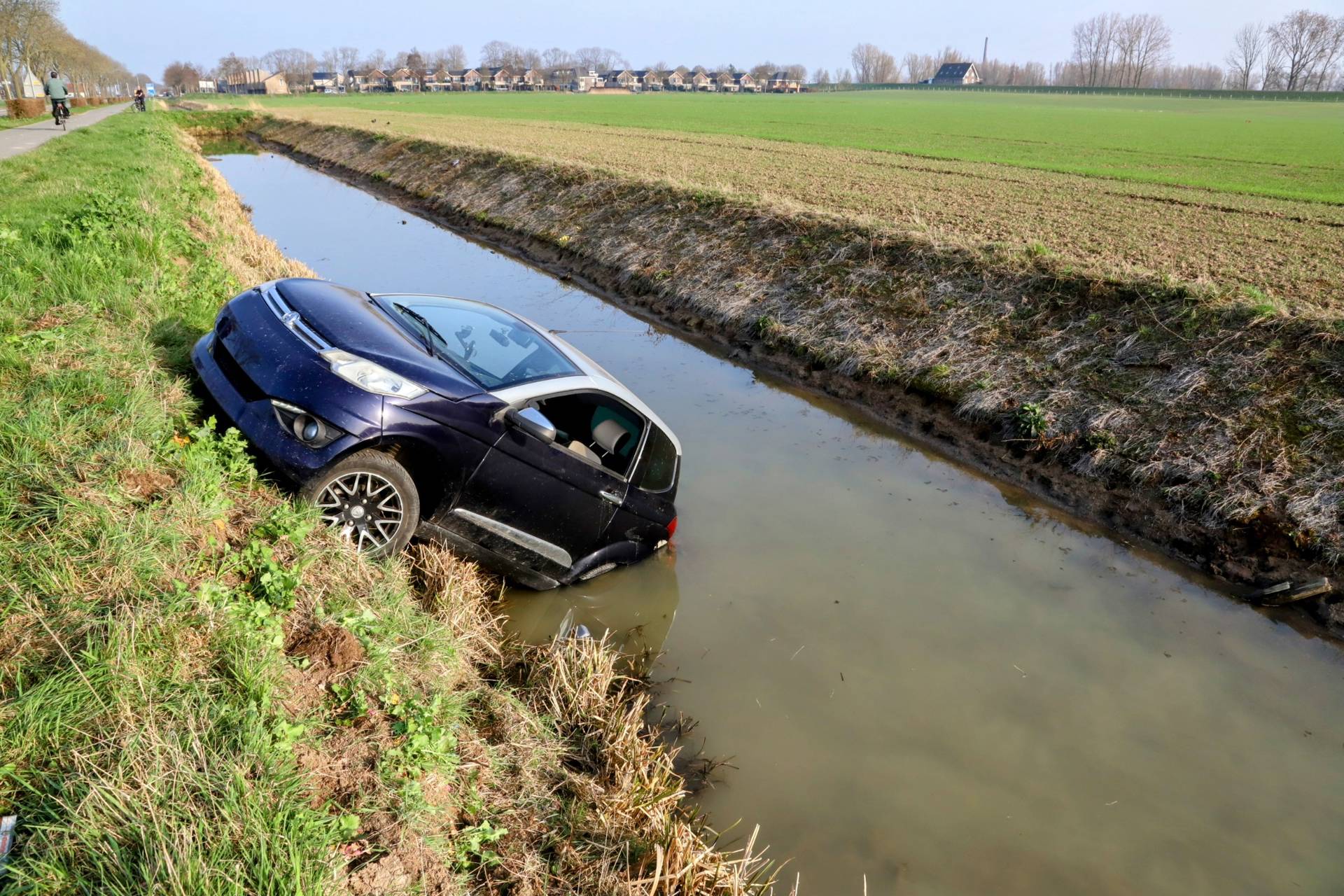De auto is later uit de sloot getakeld. Hoe het voertuig in de sloot terecht kon komen, is niet bekend.