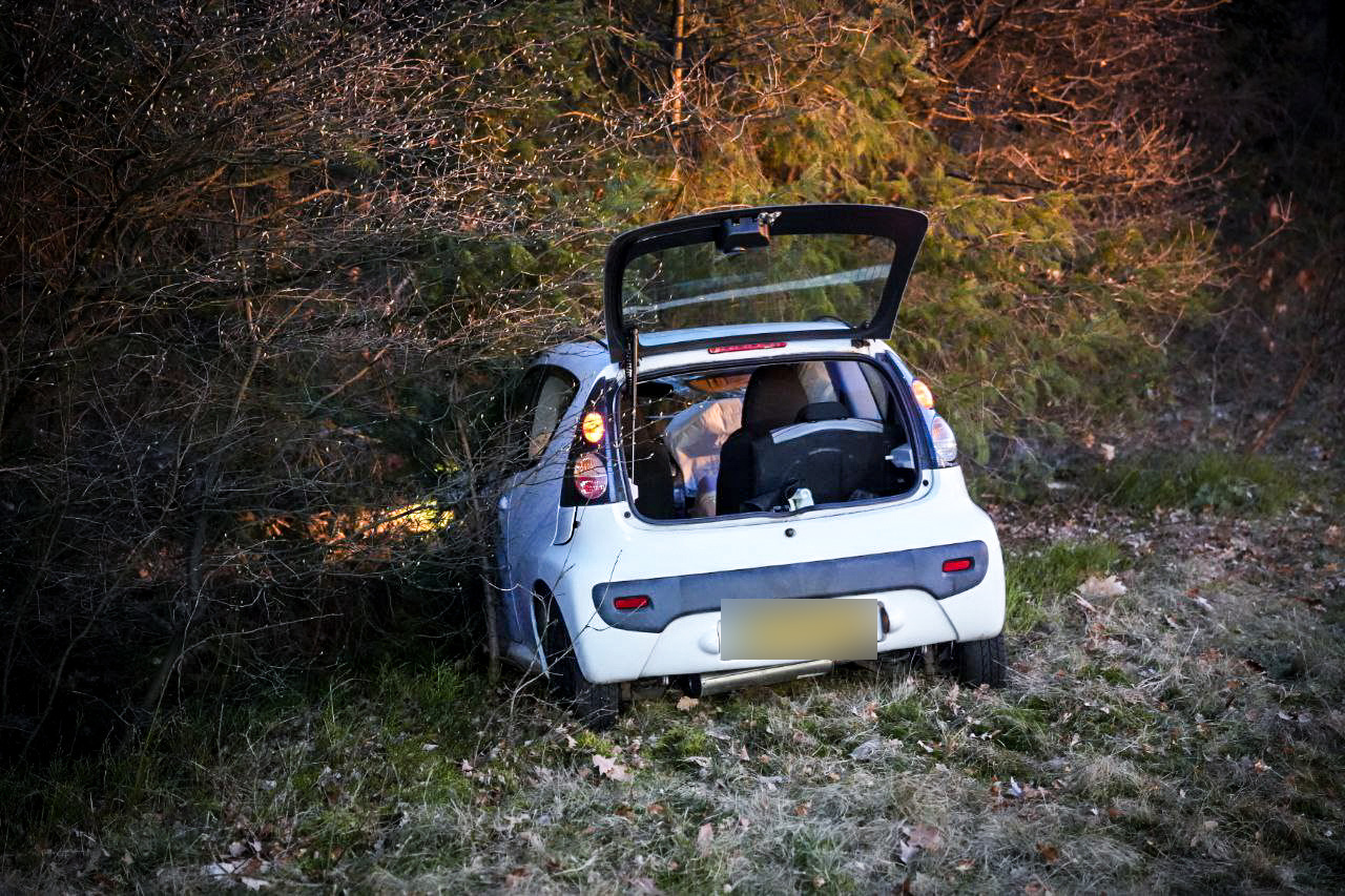 Een bestuurder verloor door nog onbekende oorzaak de controle over het stuur. De auto reed daarbij dwars door een verkeersbord en kwam vervolgens aan de andere zijde van de weg tot stilstand.