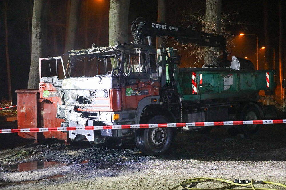 Vrachtwagen uitgebrand, politie onderzoekt brandstichting