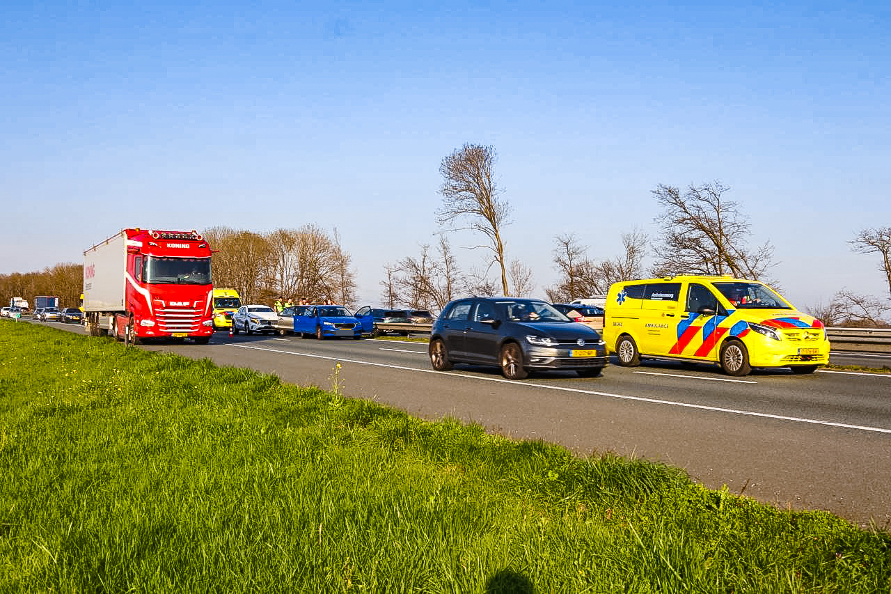 Lange file na kettingbotsing met drie auto’s op snelweg