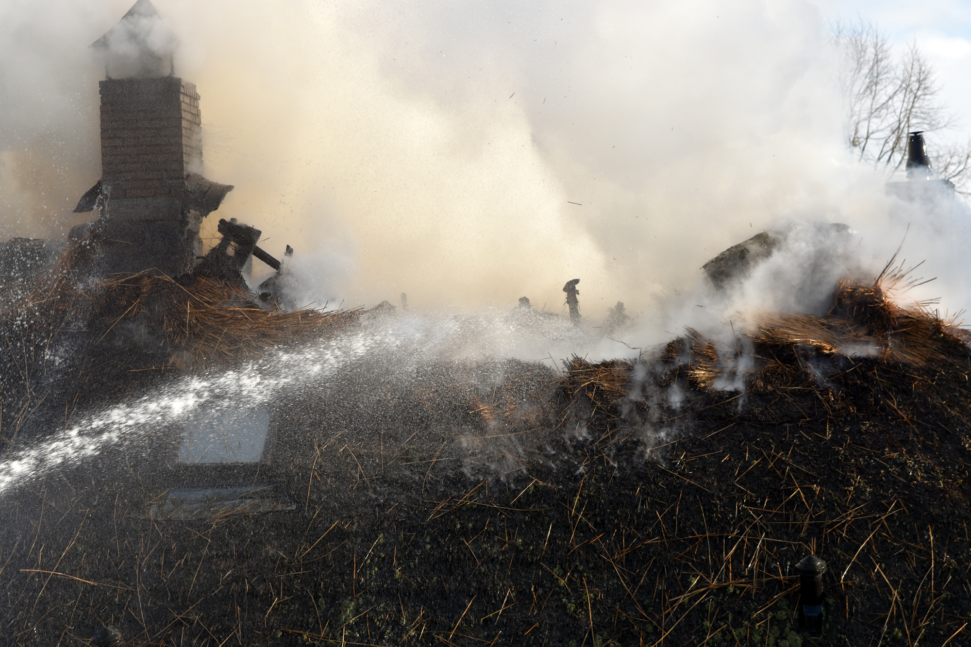 Aan het begin van de avond was de brand onder controle, maar het nablussen zal nog geruime tijd duren vanwege mogelijke smeulhaarden in het riet. Er raakten geen mensen gewond. De woning is zwaar beschadigd en onbewoonbaar. De oorzaak van de brand wordt nog onderzocht.