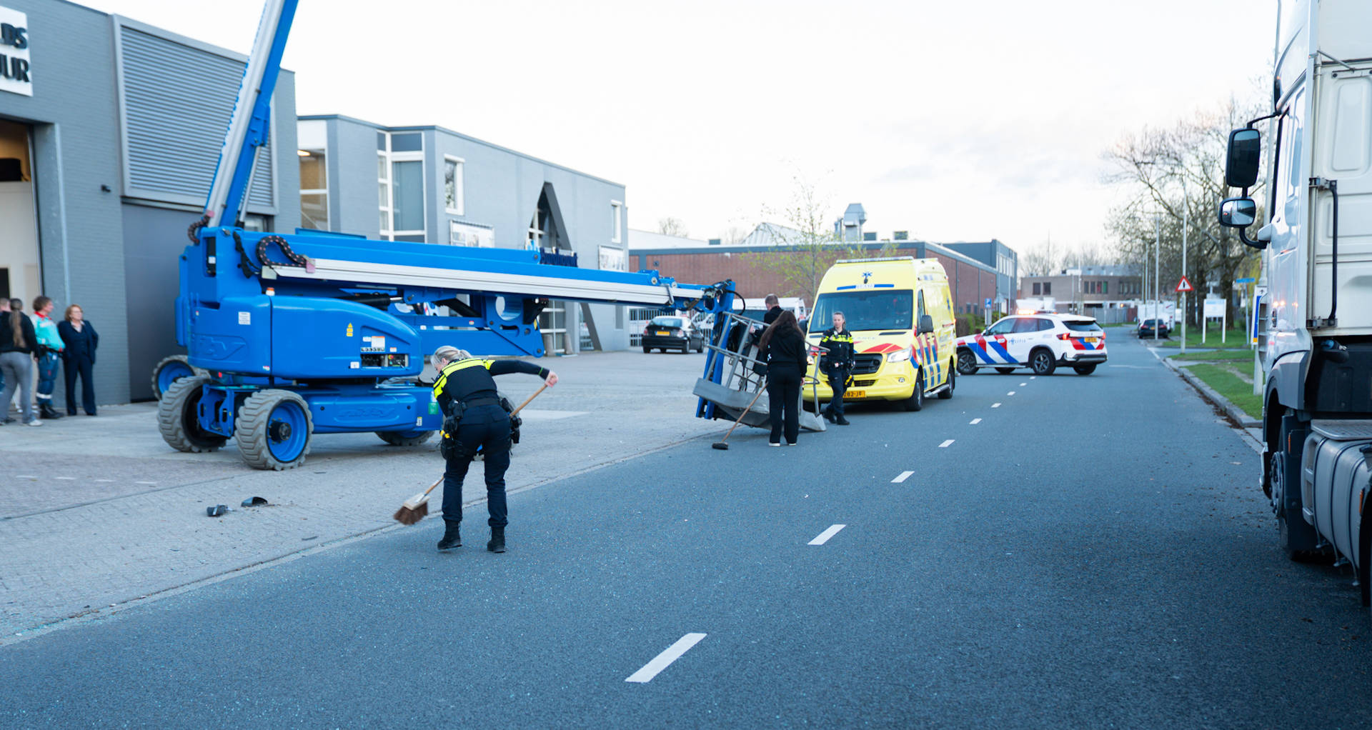Het ongeval gebeurde rond 18.15 uur bij een hoogwerkerverhuurbedrijf aan de straat. Een medewerker was bezig een hoogwerker de loods in te rijden, toen een auto door nog onbekende oorzaak tegen de machine botste.