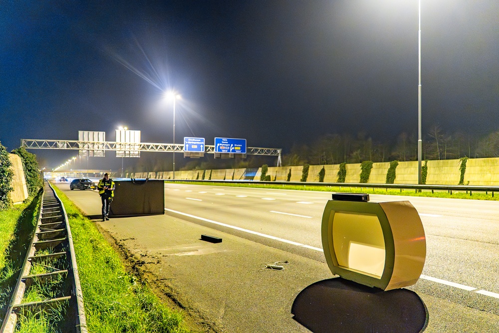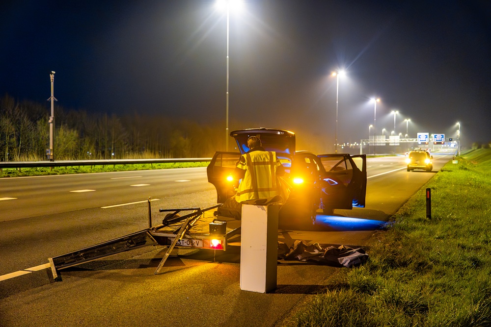 Aanhangwagen vol dj-apparatuur valt uit elkaar op snelweg