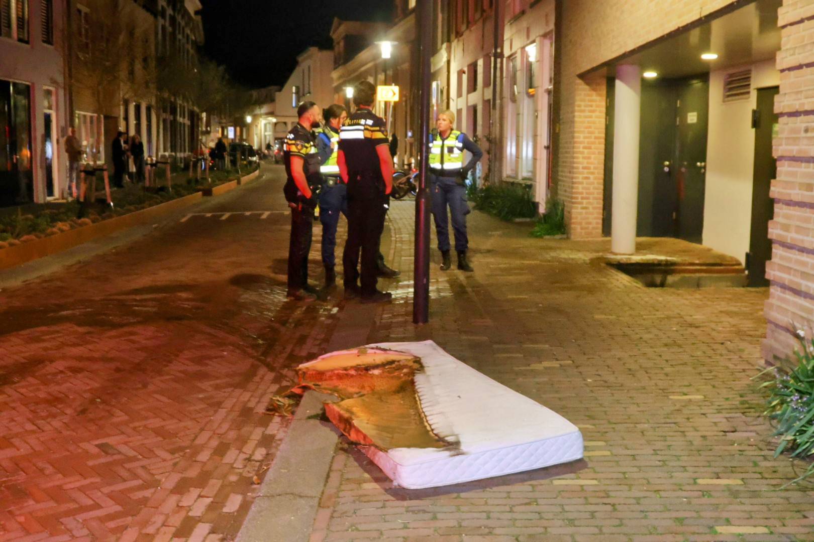 Liander wordt op de hoogte gebracht van het incident. Afvalverwerker Avri haalt het matras later op de avond op.