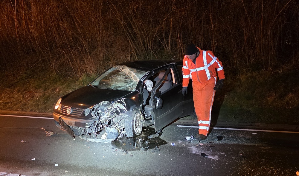 De weg lag bezaaid met brokstukken. De politie onderzoekt de oorzaak van het ongeval. Het verkeer op de Kortenoord Allee is tijdelijk in één richting afgesloten geweest.