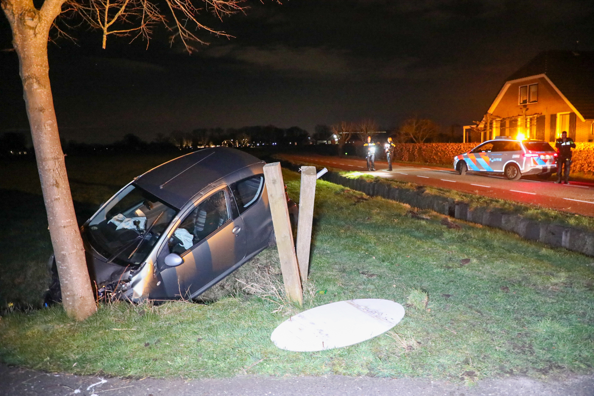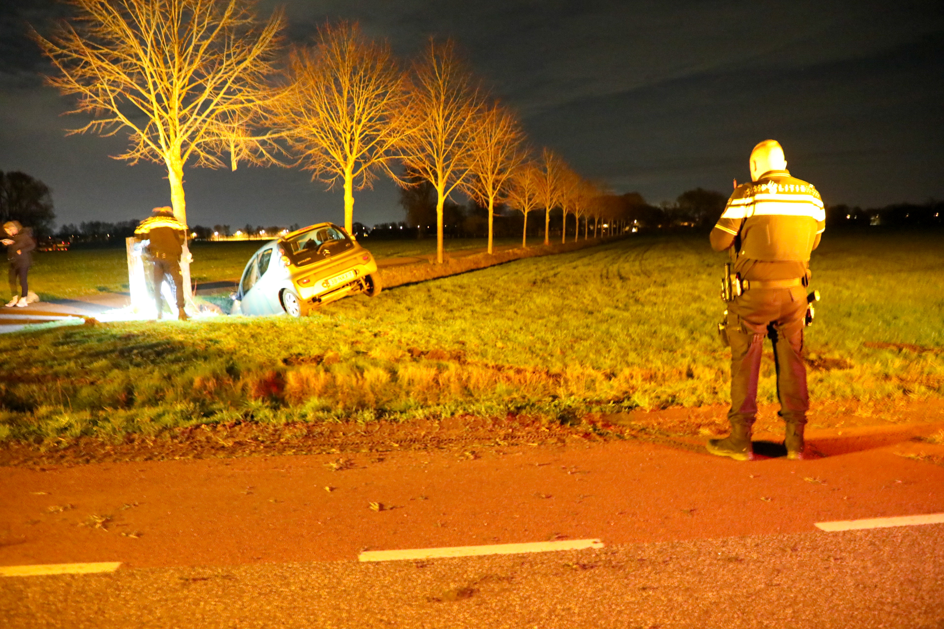 LUNTEREN – Donderdagavond is een automobiliste met haar auto in een sloot tegen een boom beland langs de Postweg in Lunteren.