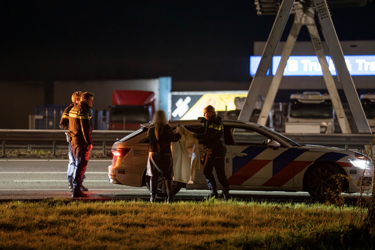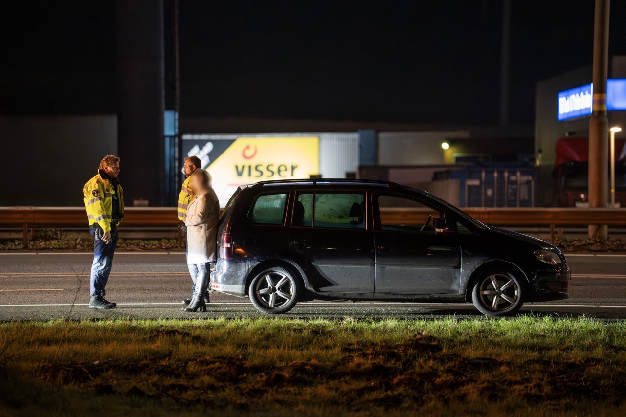 Agenten zagen de vrouw met lage snelheid over de vluchtstrook slingeren en gaven haar daarop een stopteken. Bij een blaastest bleek dat de vrouw mogelijk te veel alcohol had gedronken, aldus een woordvoerder van de politie.