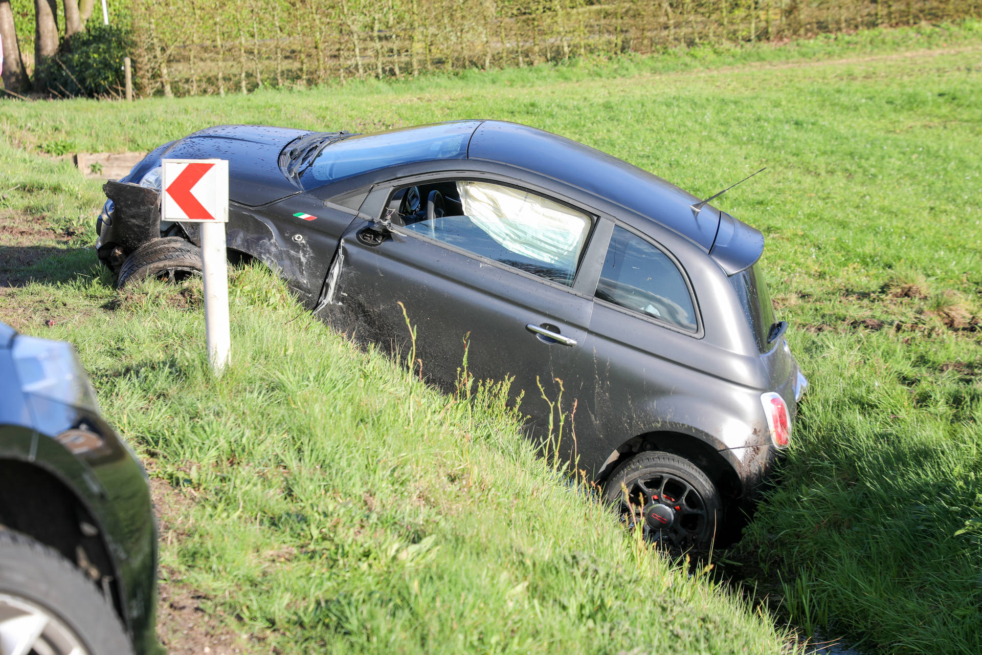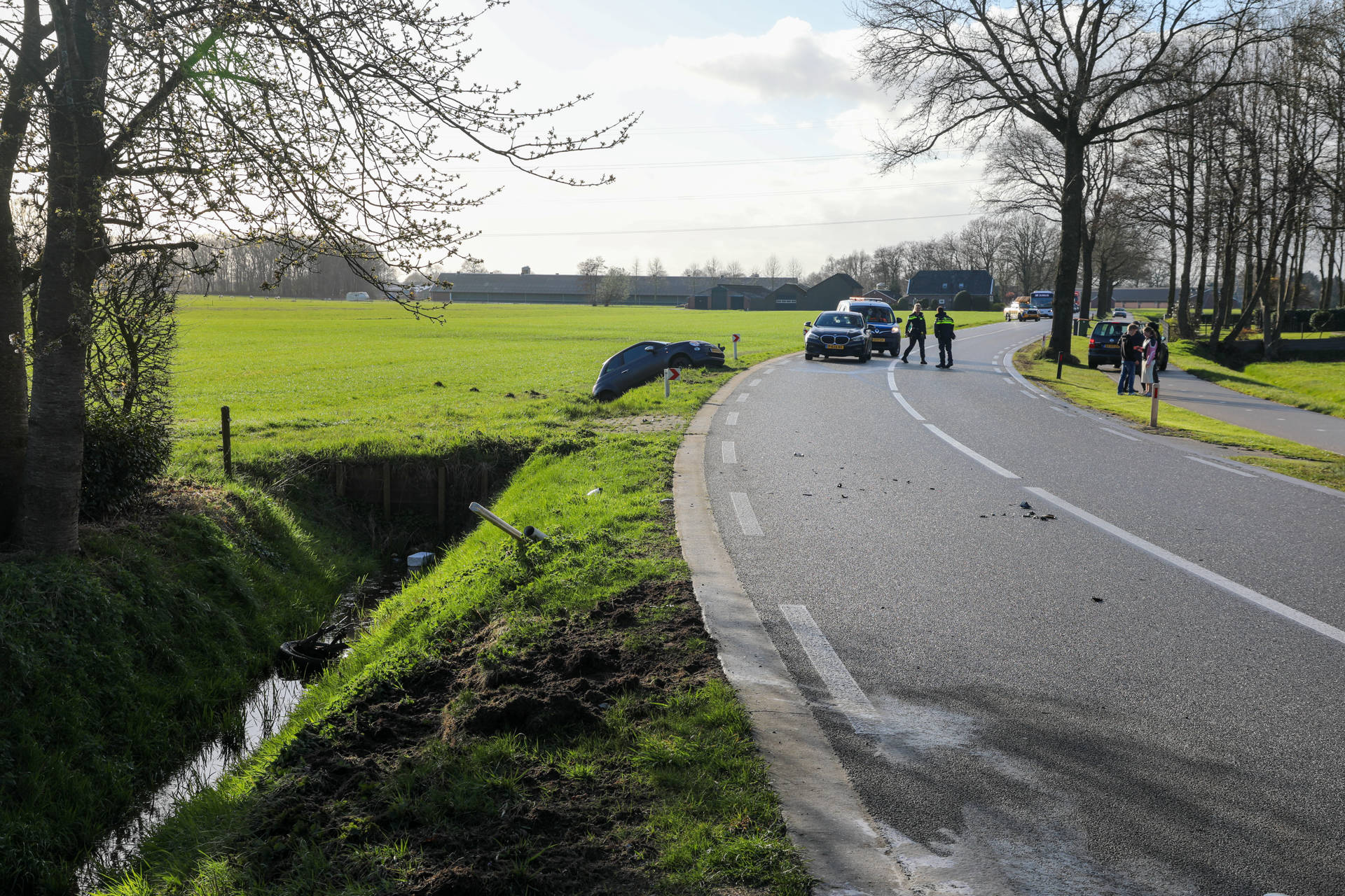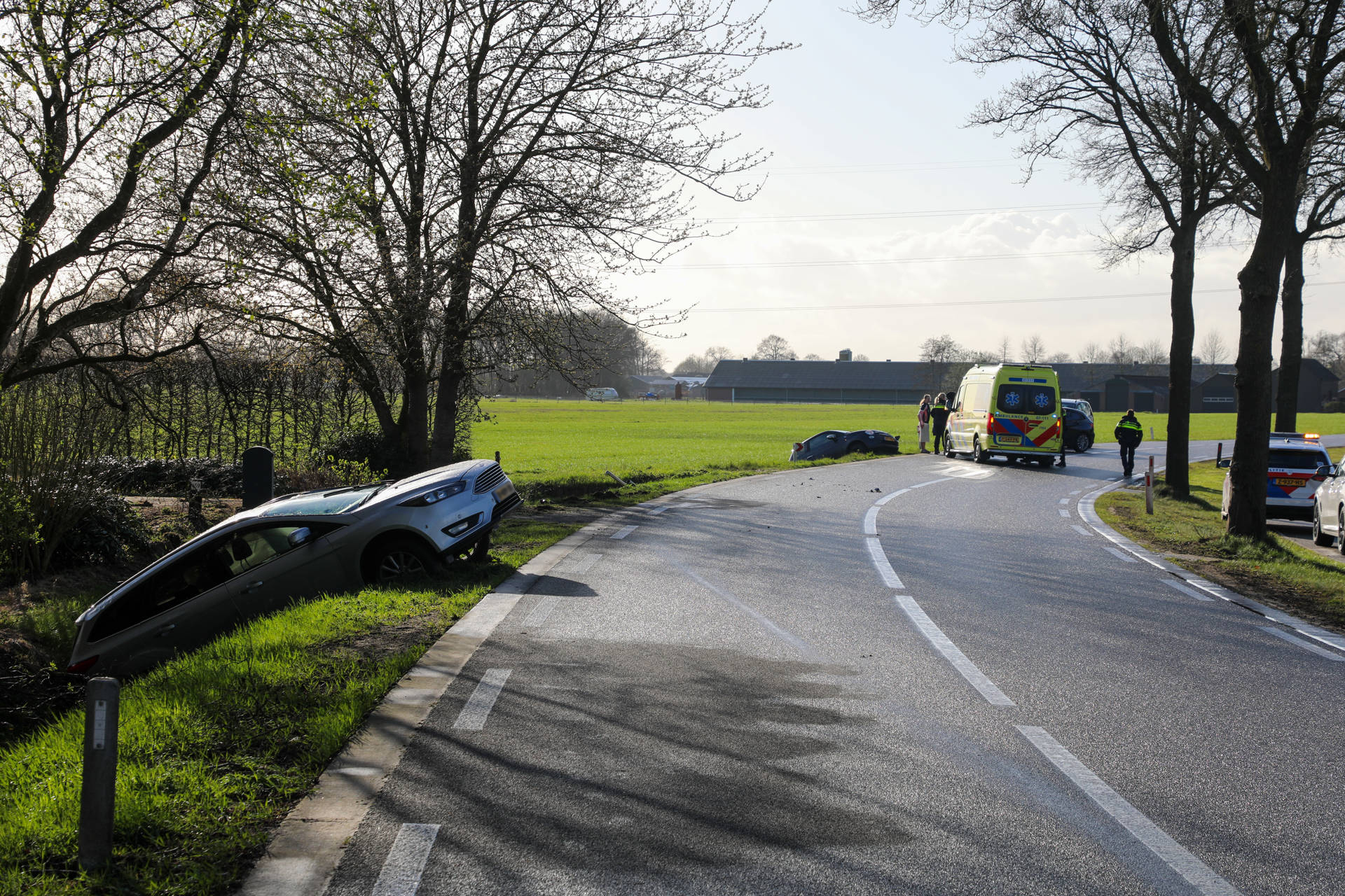 De voertuigen kwamen vanuit de richting van De Valk en botsten kort na de Walhuisweg op elkaar. Door de klap belandden beide auto’s in de sloot. Eén van de voertuigen liep zware schade op, waarbij zelfs een achterwiel afbrak. Beide auto’s zijn later afgesleept.